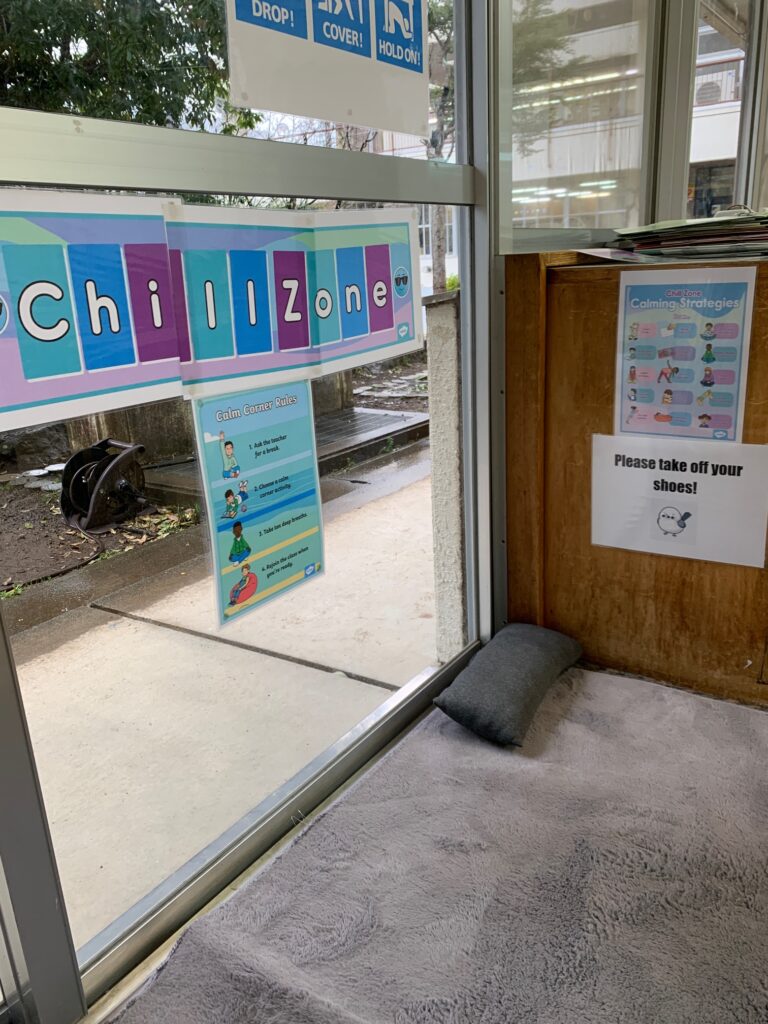 さらに、「チルゾーン(Chill Zone)」もあります。少し気持ちがいっぱいになったときに、短い時間落ち着いて気持ちを整えるためのスペースです。