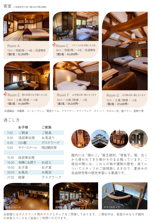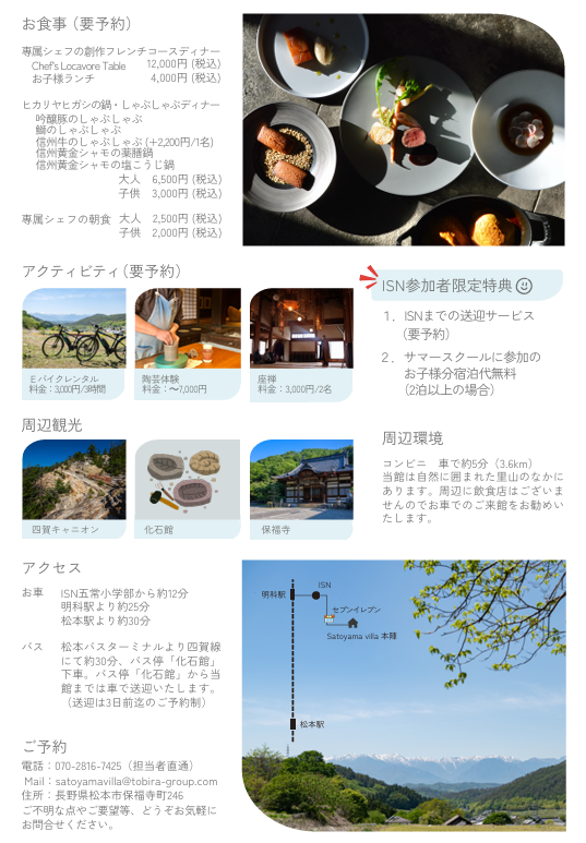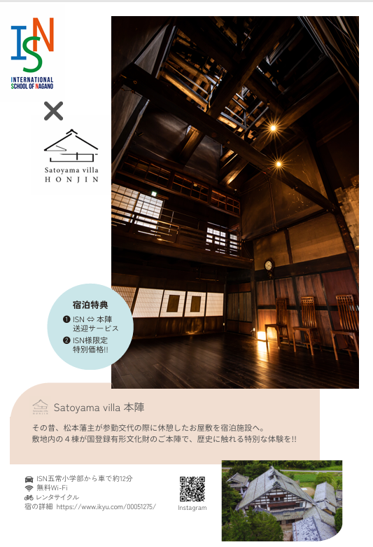 また、皆様からいただく質問の多として、「キャンパス近隣の宿泊施設はありませんか」をよくいただいてきた過去から、今年度よりなんと!五常キャンパスでは提携宿泊施設として、【Satoyama villa 本陣】さまをご紹介いたします。