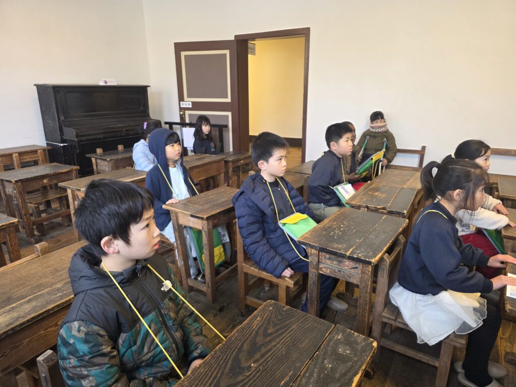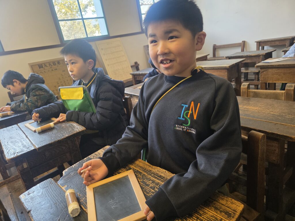 This week saw grade visit the first ever elementary school in Matsumoto City, Kaichi. For unit 5, we are focused on our local community’s history and landmarks. One of the biggest landmarks in Matsumoto City is Kaichi, as it is the first ever Elementary School built in the city. The students learned about quite a lot, such as how Kaichi was all those years back, and how things are different now. For example, there was no heating at Kaichi, so the students experienced how it was like to go to school with no heating or cooling systems. The students also learned about the different books and ways to write, and how things are compared to modern times. Our tour guide was fantastic, and was a former teacher in Tokyo, and he actually gave us a small kanji lesson, using different vegetables and animals. I personally enjoyed the trip and I learned quite a lot myself.