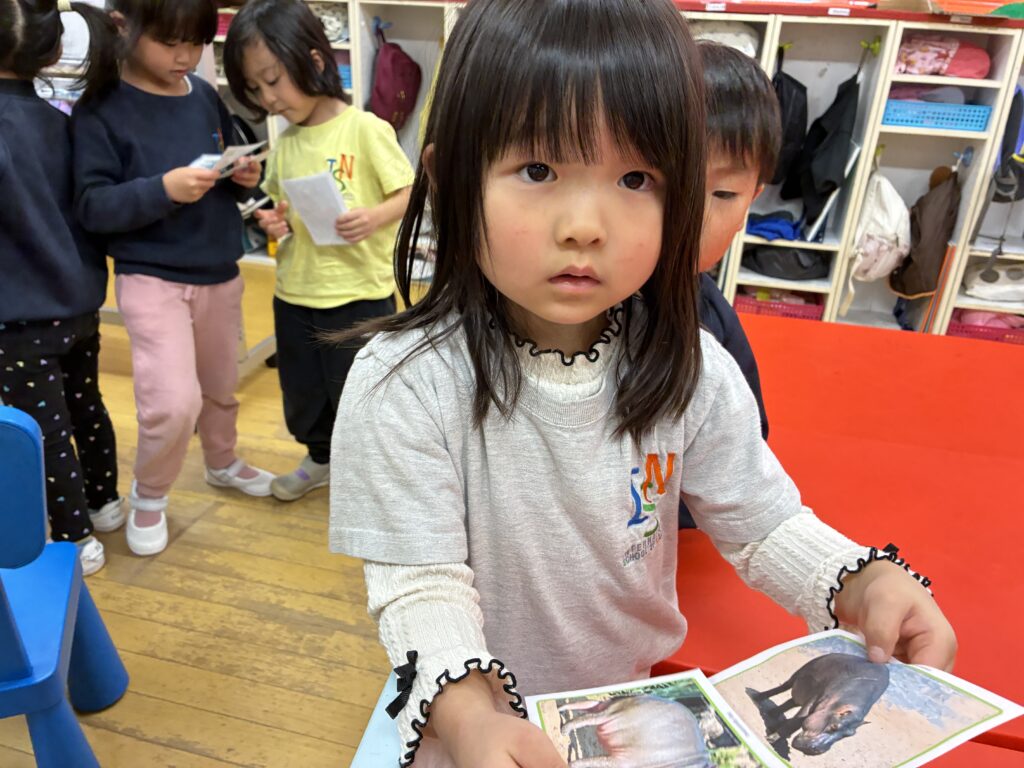 レッスンの最後には、動物の親と赤ちゃんをマッチングさせる楽しいゲームも行い、笑顔でいっぱいの時間になりました。
