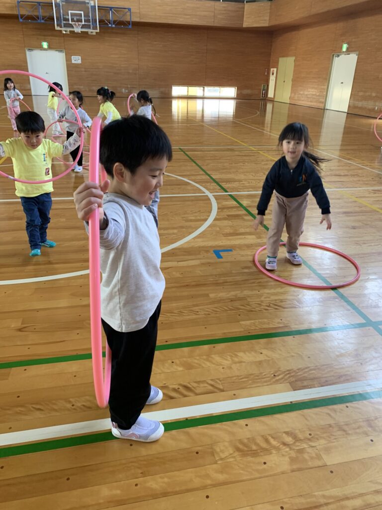 ジムレッスンでは、フラフープのいろいろな使い方や技を試して、とても楽しんでいました。初めてブリッジにも挑戦しました。簡単ではないけれど、完璧にできるようになるまであきらめません。💪
