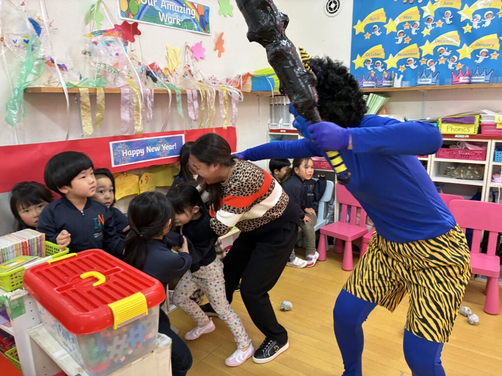 週のはじめには、日本のお祝い、特に節分について学びました。先週すでに節分について学んでいたので、2月3日(火)に鬼が来ることを、子どもたちはとても楽しみにしていました。