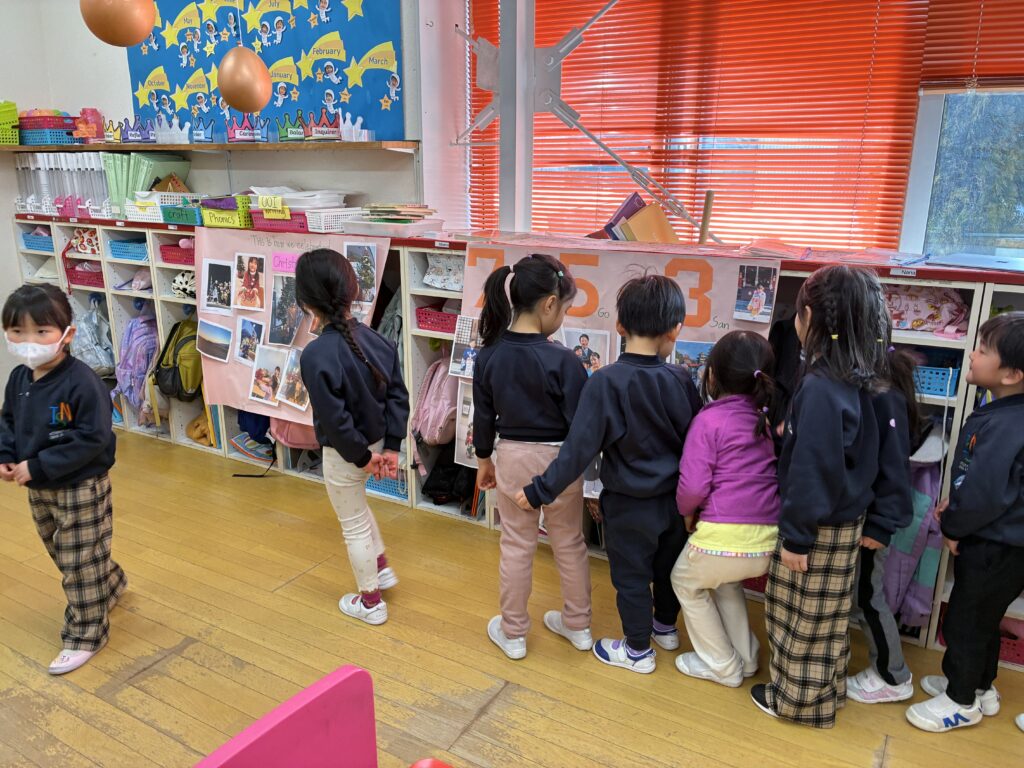 We were also very happy to receive many photos from Shooting Star parents. Thank you so much for sharing these wonderful photos—they were very useful for our Unit of Inquiry. We sorted the photos by events, including Hinamatsuri, Children’s Day, Shichi-Go-San, Christmas, and celebrations from other countries. We then talked about how the students celebrated Christmas last year. They shared that they went to hotels, decorated, ate cake and chicken, and decorated Christmas trees. Afterward, they reflected on how they felt, and everyone said they were very happy because they spent special time with their families.