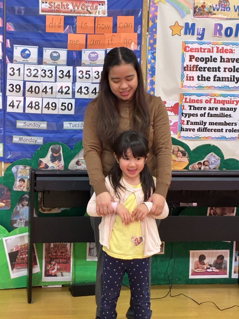 In the afternoon, we heard screams from Aurora class and soon realized the demon had arrived! The students picked up their newspaper balls, threw them, and shouted, “Demons out! Good luck in!” A few students felt scared and cried, but most were very brave and faced the demon confidently. Later, when they saw their photos posted in the hallway, everyone laughed at their reactions.