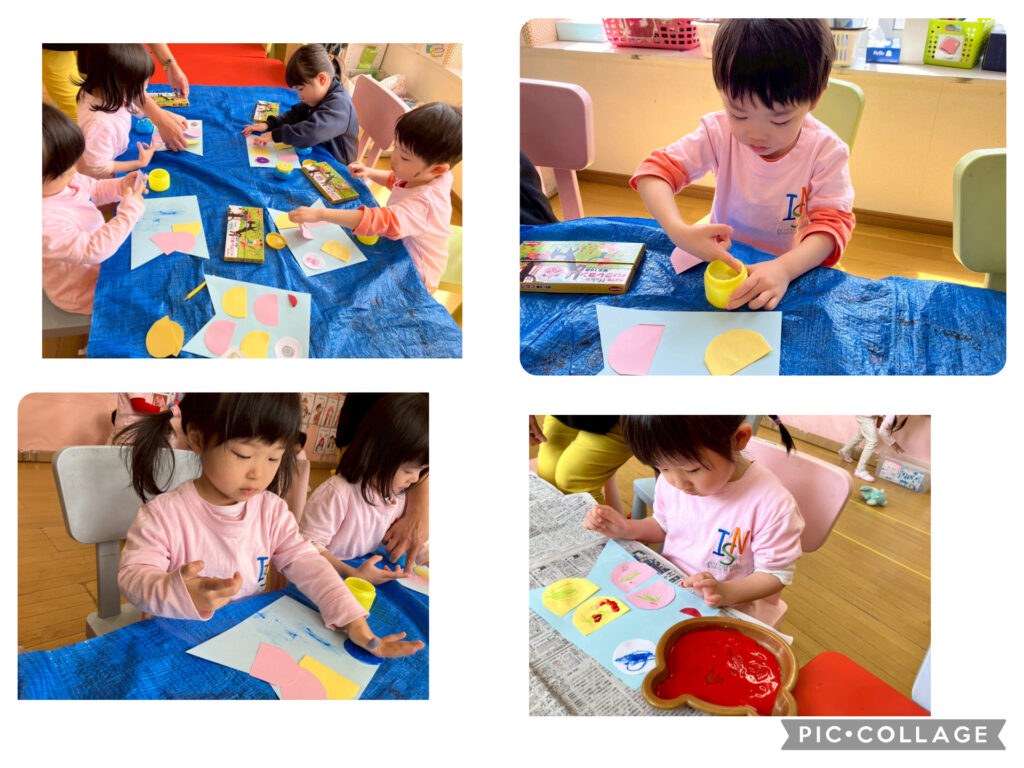 「こどもの日」にちなんで、こいのぼりの紙芝居を読みました。わくわくした目で聞きながら、お話に出てきたクイズに答えていました。そして「こいのぼり」の工作をしました。こいのぼりの目にはクレヨンで色をつけ、うろこの色紙には指に絵の具をつけてフィンガーペイントを楽しみました。”子どもたちみんなが幸せに元気に育ちますように!”