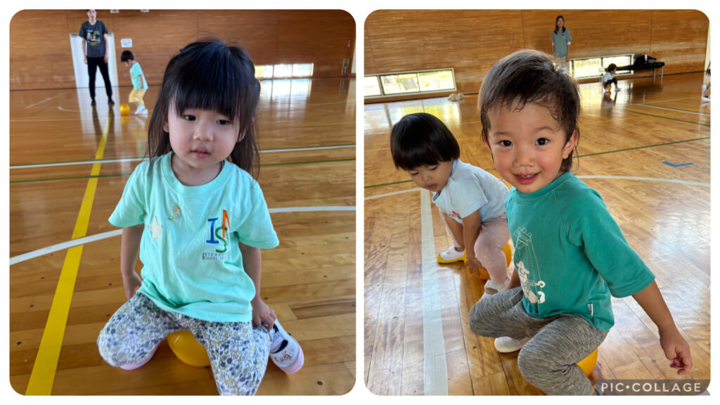 おやつタイムや、ランチタイムで、「What shape is this?」と聞くと、子ども達は、「Circle」「Square」と答えてくれます。朝の自由時間には、丸や四角、三角、ハート、星などの形のパズルを楽しんでいます。