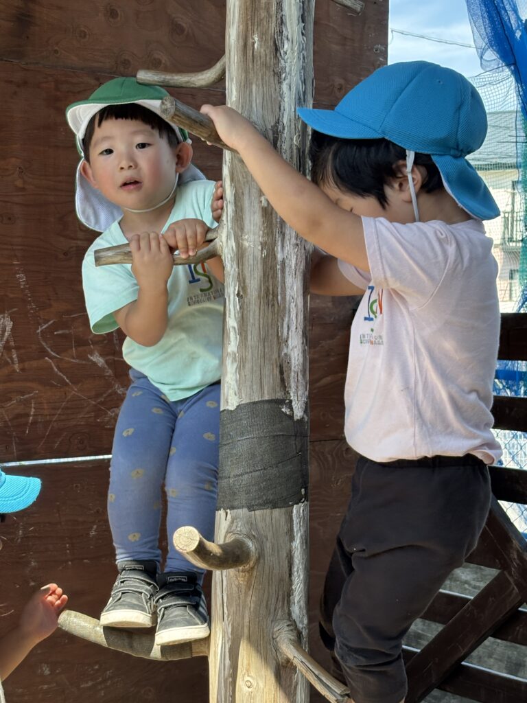 Hello. The weather has been so pleasant this week, hasn’t it? It feels like autumn is just around the corner. While out on a walk, we found leaves that are starting to change from green to red, and we also noticed that the foxtails the children love so much have turned from green to brown! I heard they’re called “cat tails” because they look like a cat’s tail. The children were also excited, pointing things out like, “Oh! A dragonfly!” and “Look, a purple flower!” They showed so much curiosity about everything we came across.