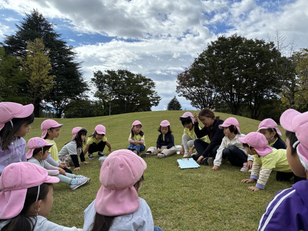 木曜日には、公園へお出かけして屋外学習を行いました。青空の下で朝の歌を歌いながら、自然の中で一日がスタート!