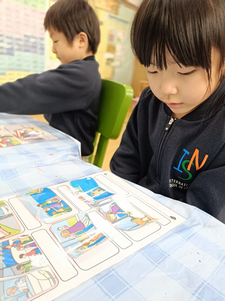 クラスでは序数の復習に意欲的に取り組んでおり、日常の会話や作文活動の中で序数を正しく使う力が着実に伸びています。ここ数週間は、ワークステーションの時間を活用してUOIに重点的に取り組んできました。重要な内容を繰り返し振り返ることで、生徒たちは3つの探究分野全体を通して、主要な概念への理解をより深めることができました。