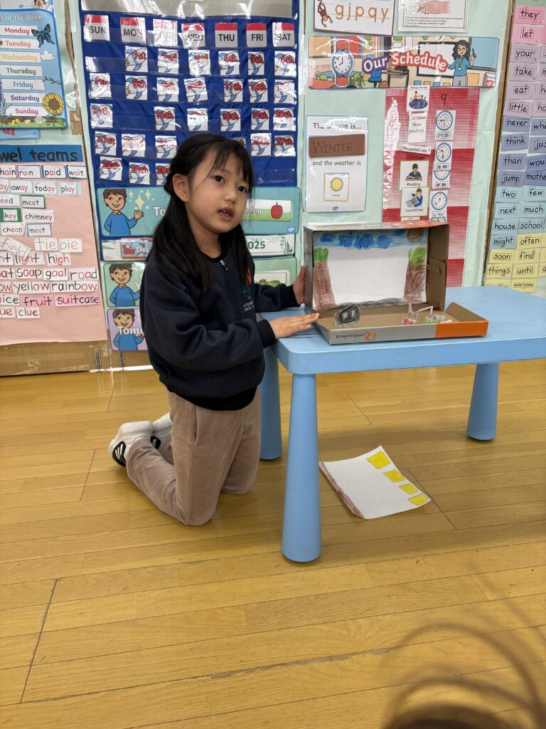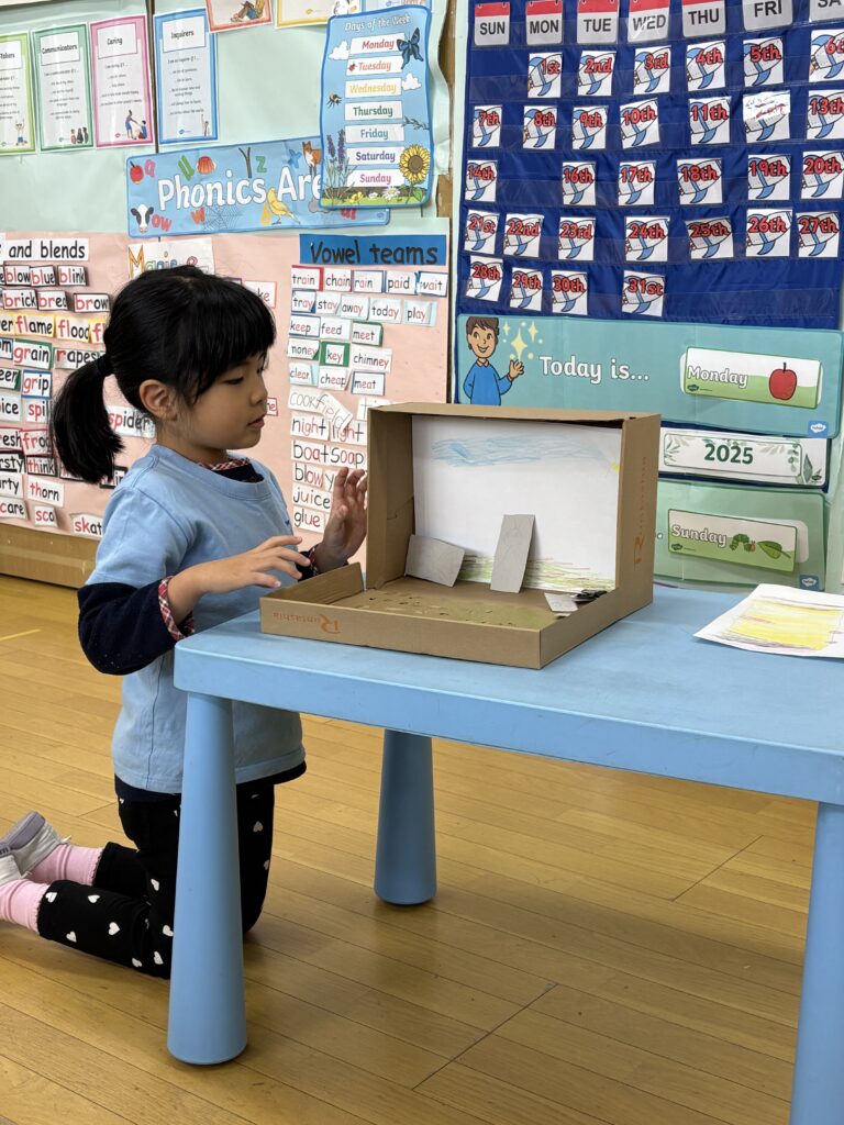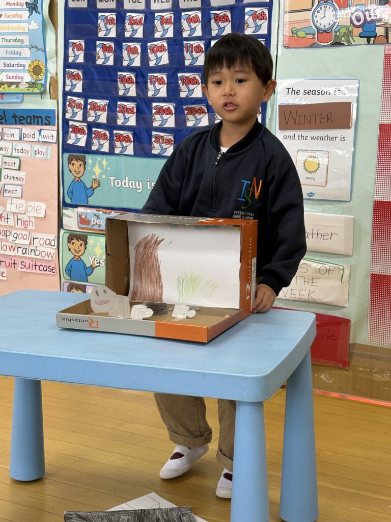 ストーリーテリングの活動を重ねる中で、感情がどのように物語を形づくり、自分自身と他者をつなげているのかを理解することができました。全体を通して、このユニットは子どもたちの創造性や共感する力、そして自己表現への自信を育む大切な学びの機会となりました。