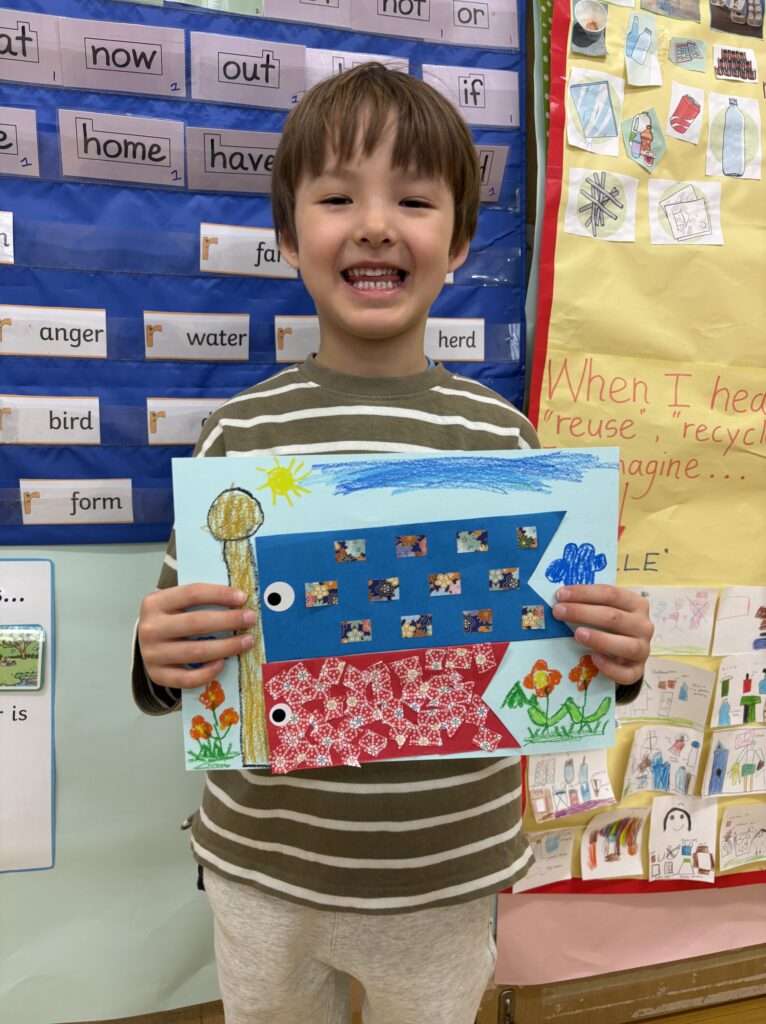 This week the students enjoyed exploring the concept of “reusing materials to maintain the health of our planet”. The train of thought went like this; the more we use things over and over instead of disposing and buying new stuff, the less trash there is in the world. Less trash means a healthier environment for everyone!