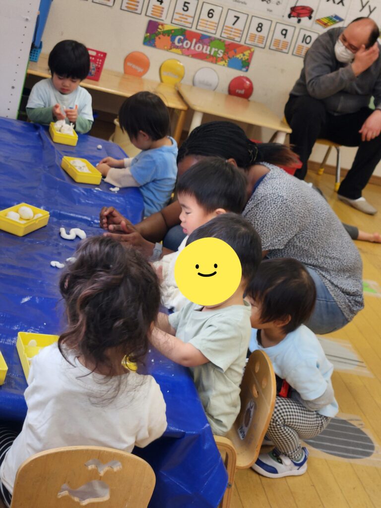 今週は、初めてのクラフトにも挑戦!トイレットペーパーの芯を使って、イースターバニーを作りました🐇🩷芯の大きさやそれぞれのパーツは、すべて子どもたちが選び貼り付けましたよ。何を作るのかな?早く作りたい!と、順番が待ちけれない様子の子どもたちでした✨