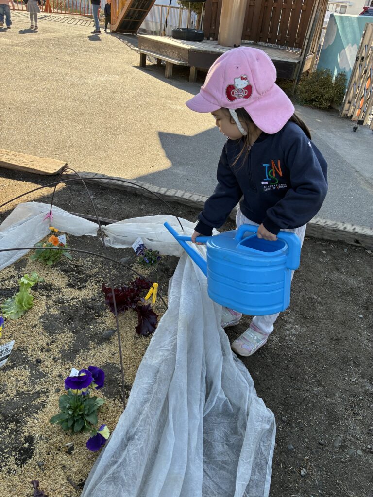 今週のUOI(探究学習)では、「植物が育つために必要なもの」をテーマに学びました。子どもたちは小さな科学者となり、ラディッシュの種を植え、日光・水・空気といった大切な要素について話し合いました。また、園の庭で育てているレタスやお花の観察も続け、しっかりお世話ができているか確認しました。