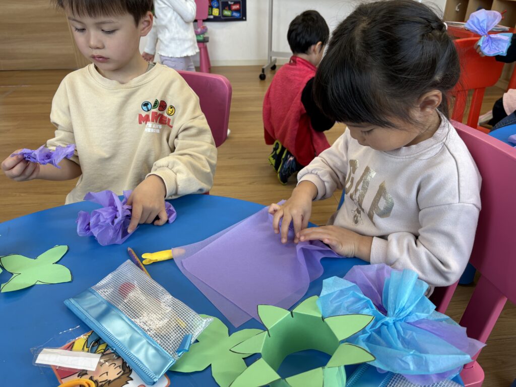 私たちは切り絵の技術を練習し、この花かごの紙版を作りました。とても可愛らしく、色鮮やかに仕上がりました!