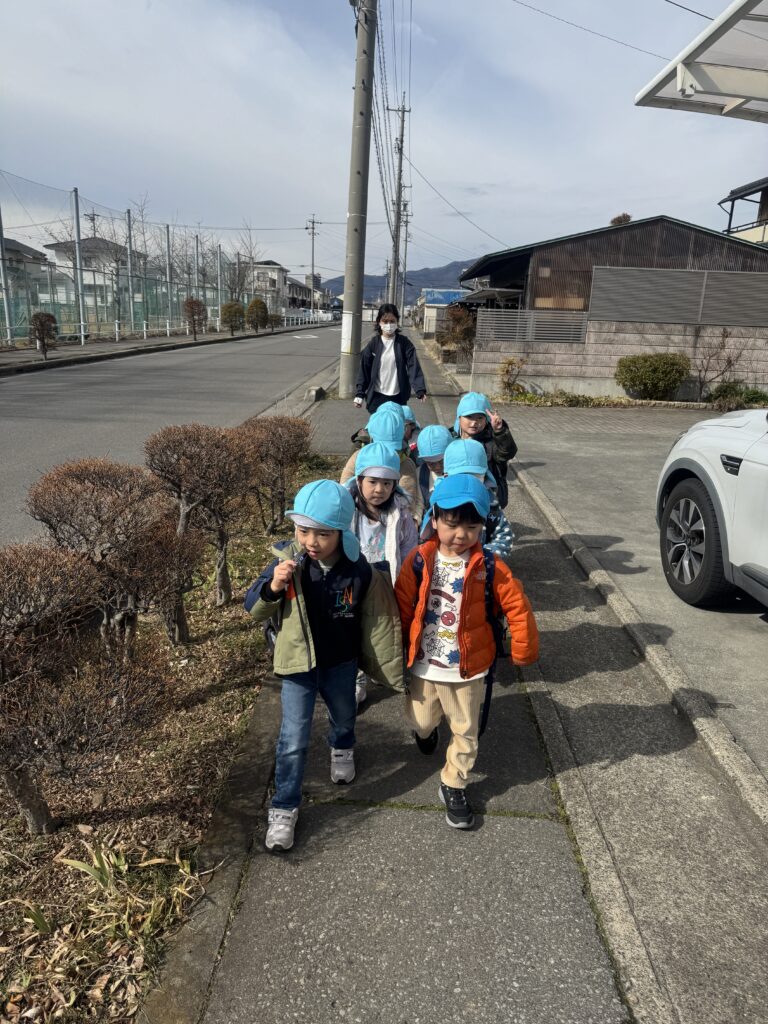 地域を歩きながら交通安全について注意深く観察し学んだ充実した散歩の後、私たちは近くの公園へ移動し、存分に遊ぶ時間を楽しみました。🏞️🛝🌳✨