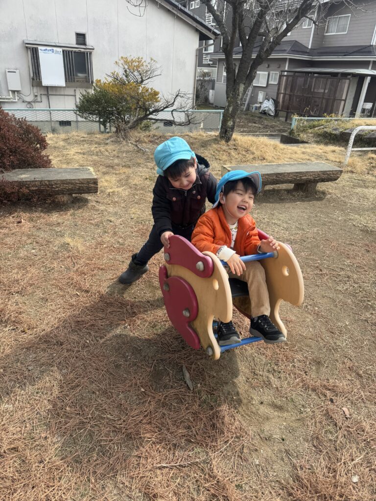 安全知識を実際の場面で応用した後、自由に動き回ったり探検したり、新鮮な空気を楽しむことに子どもたちは大興奮でした。公園での遊びはたくさんの笑いと笑顔をもたらしただけでなく、身体の発達や社会性、チームワークの育成にもつながりました。