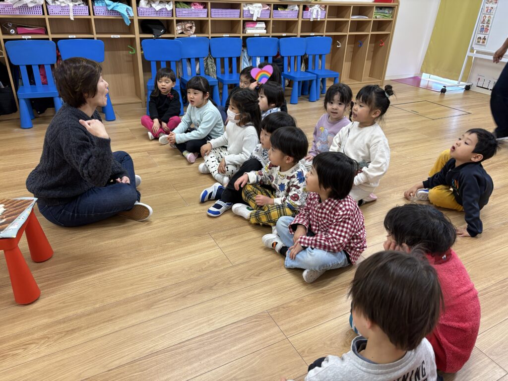 We had a special guest teacher from Matsumoto this week! Ms. Serena read us a fun and interesting story, and the children listened closely with big smiles.