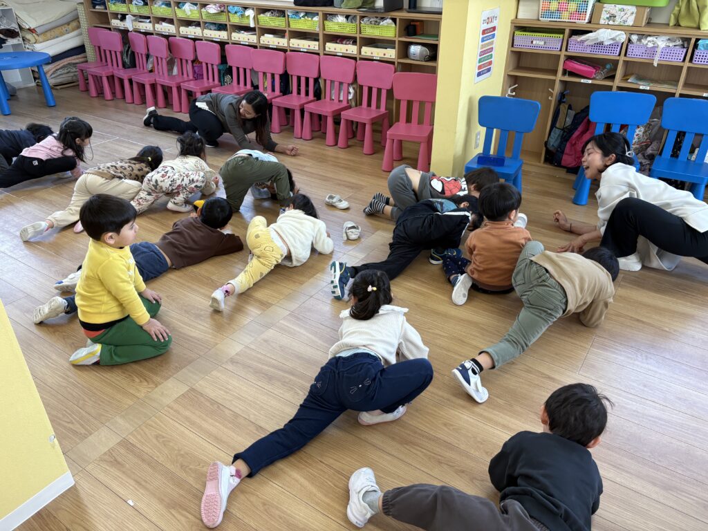 一緒にヨガをするのもとっても楽しかったです!🧘♂️🧘♀️いろんなポーズに挑戦したり、体を伸ばしたり、バランスを取ったりするのが最高でした。体を木のように強く、山のように高く、小さなネコのようにして静かにする方法も学びました。