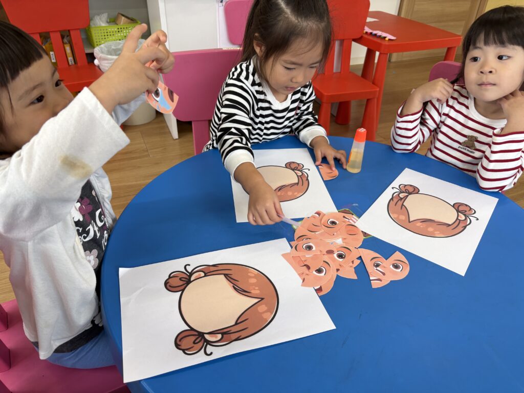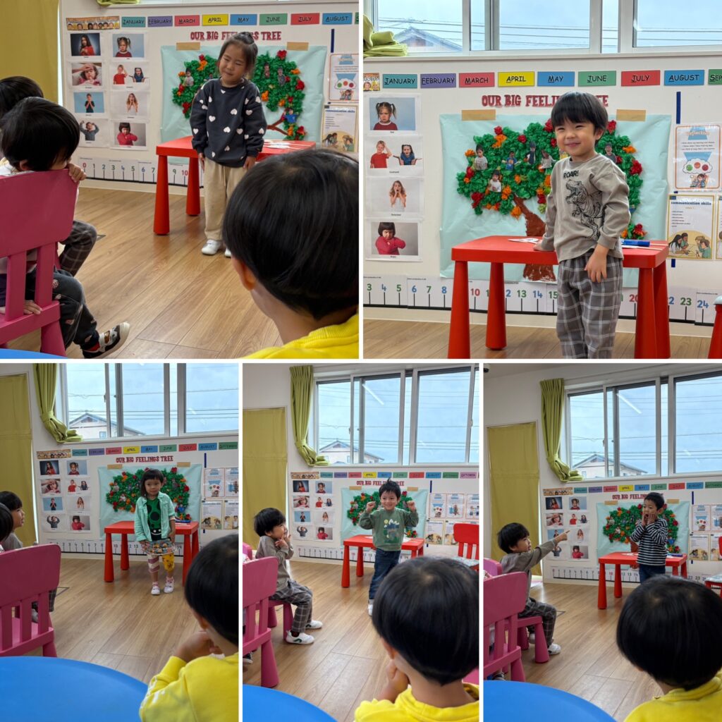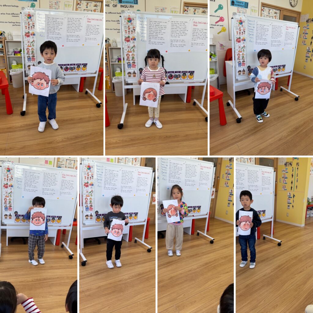 もうひとつの楽しい活動は、感情ジェスチャーゲームでした!大きな笑顔から、ふくれっ面や悲しい表情、さらにはドラマチックな怒りの表情まで、様々な感情を表現するのがとても楽しかったです!それを見るのは本当に楽しいことで、子どもたちが互いの感情を当て合う時の笑い声と興奮が、音楽のように教室中に響き渡りました。💕
