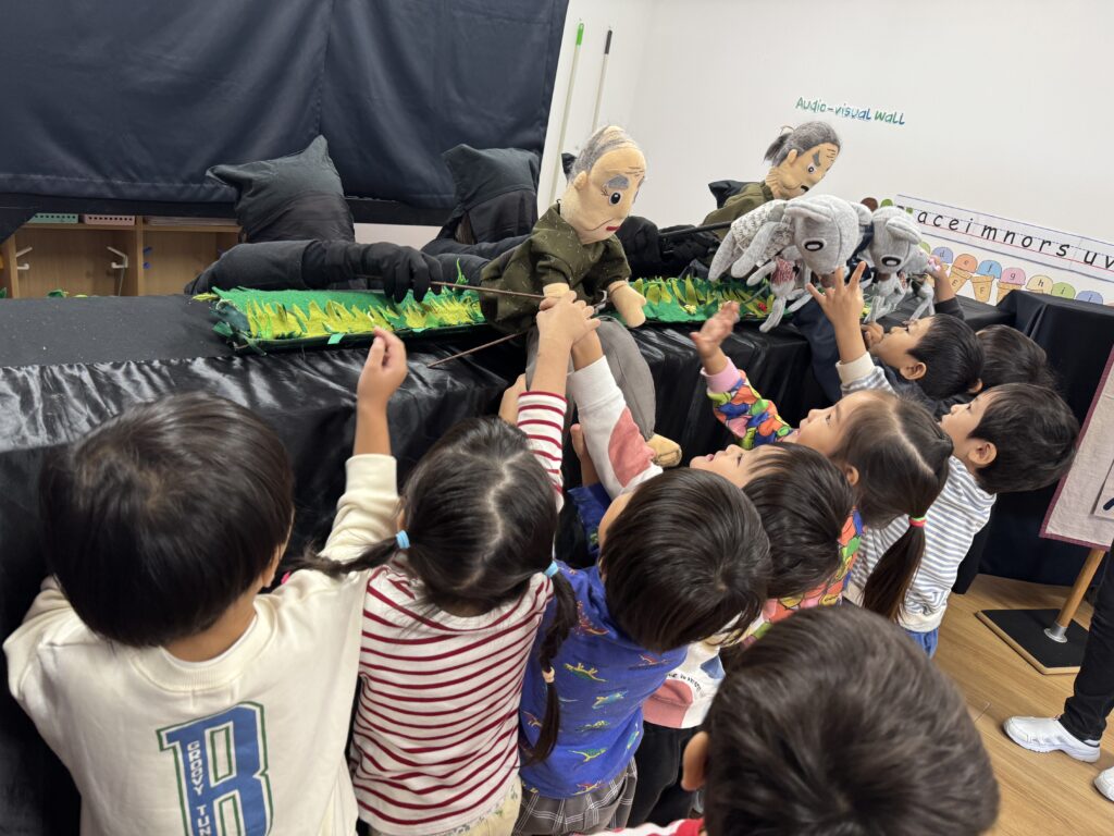 This week, we enjoyed a special treat: a puppet show of Omusubi Kororin! Everyone was so excited as they gathered around, eyes wide with curiosity, waiting for the story to begin. As the puppets came to life, everyone watched closely, giggling and cheering for the kind old man who dropped his rice ball into a hole and discovered a magical world underground! 🕳️✨ The story taught us about kindness, honesty, and how good things come to those with a gentle heart. Everyone laughed, clapped!