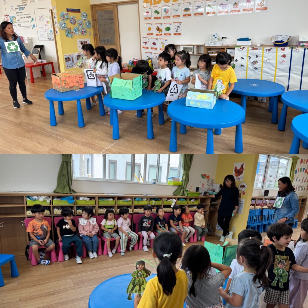 ミルキーウェイクラスのお友達が教室を訪れ、リサイクルについて素晴らしい発表をしてくれました。捨てられてしまうものをリサイクルする方法や、プラスチック・紙・その他の可燃ごみを適切に分別する方法を学ぶ貴重な機会となりました。家庭でも実践できますね。子どもたちはさらに、リサイクル素材が創造的な方法で活用できることも発見しました——楽しい工作に生まれ変わるのです!