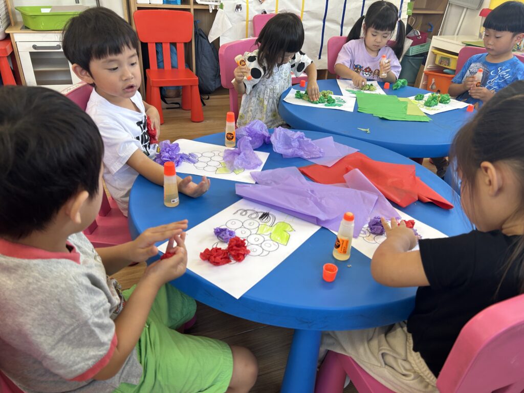 秋の工作では、クラスのみんなが大好きな季節の果物の一つを作りました!