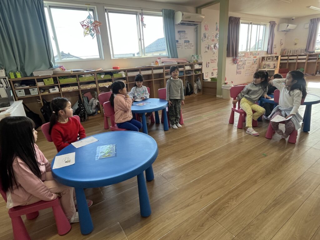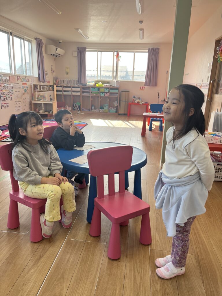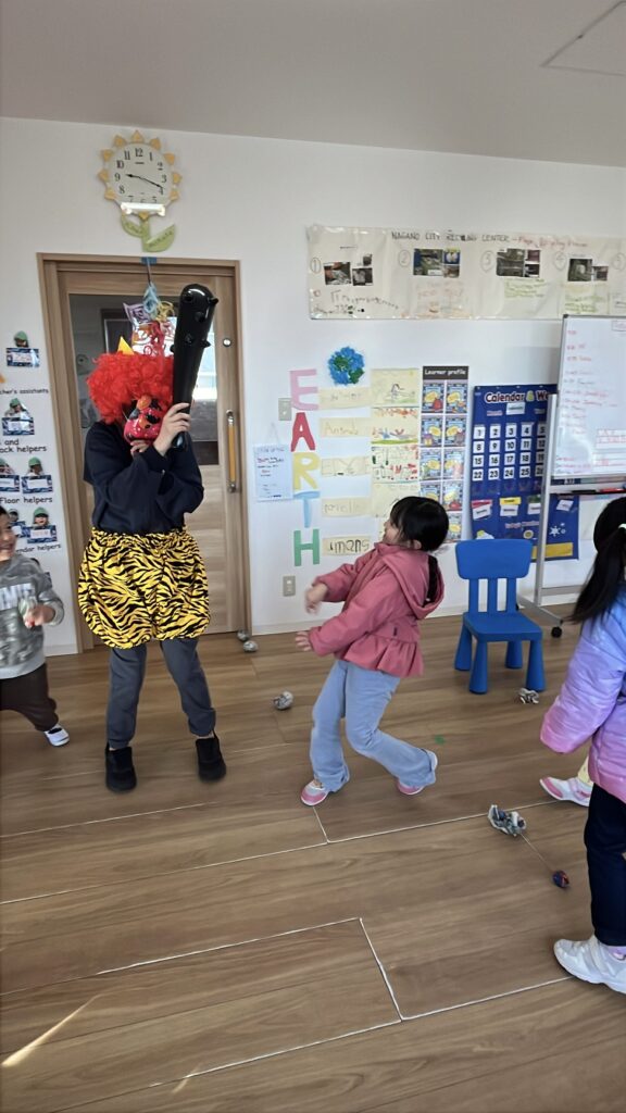 The children happily threw their pretend beans while calling out, “Go away, demon!” Together, they showed courage and teamwork as they worked to chase the oni away and invite good fortune into our school.