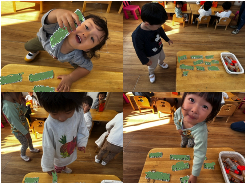 今週は新しい月間テーマ「比較」の導入を行いました。子どもたちは大きな象と小さなネズミなど、対照的なものについて学んでいます。公園へ向かう散歩中、工事中の現場を通りかかりました。大きな機械が大きな音を立てており、子どもたちはすぐに「音がうるさい」と指摘しました。現場を過ぎると再び静かになりました。子どもたちは周囲を観察し、実生活で体験することで「うるさい」と「静か」を区別できます。これらは新しいテーマを学ぶ方法の一例に過ぎません。観察し比較できるものは数多く存在します。来週はさらに探求を深め、テーマに沿った学びを促進する様々な活動を行います。