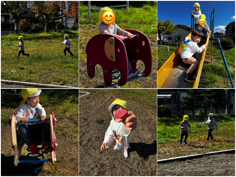 レインボーの子どもたちは、公園での散歩や自由遊びが大好きです。毎日必ず行き、十分な時間を屋外で過ごせるようにしています。小さな子どもたちは体をもっと強くし、エネルギーを発散させ、自然を楽しむ必要があるのです。公園で外遊びをすることは、まさに理想的な環境です。屋外で過ごす時間は彼らの全体的な健康に非常に有益で、エネルギーを発散させ、お昼寝時間にはよく食べよく眠れるようになります。それに、外遊びに行くときはいつもみんなが本当に楽しんでいます。