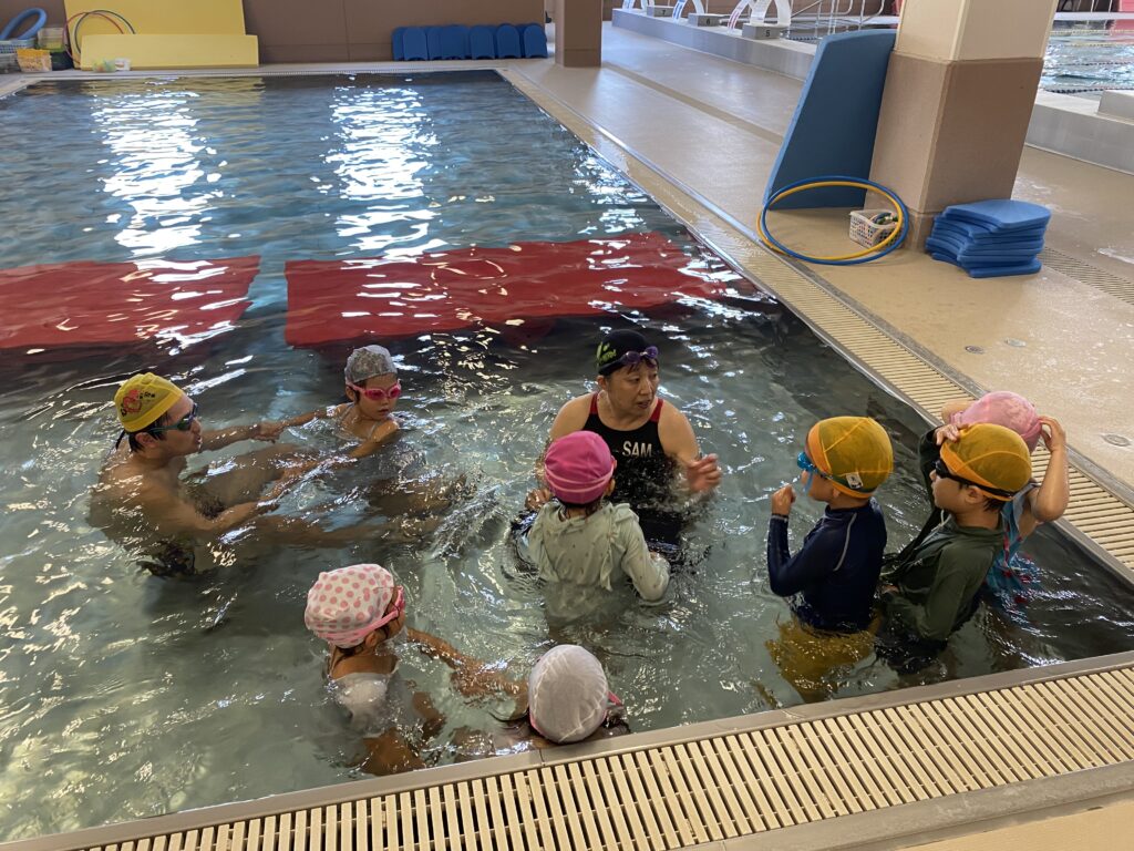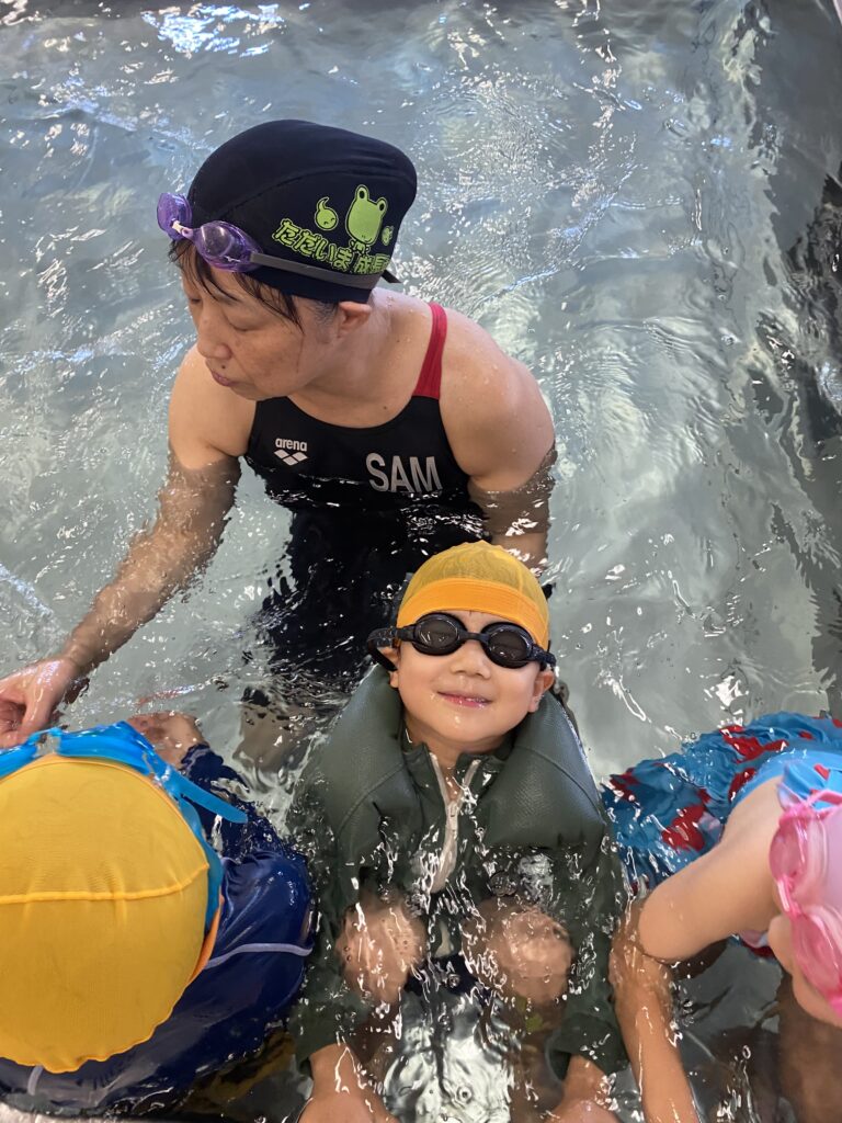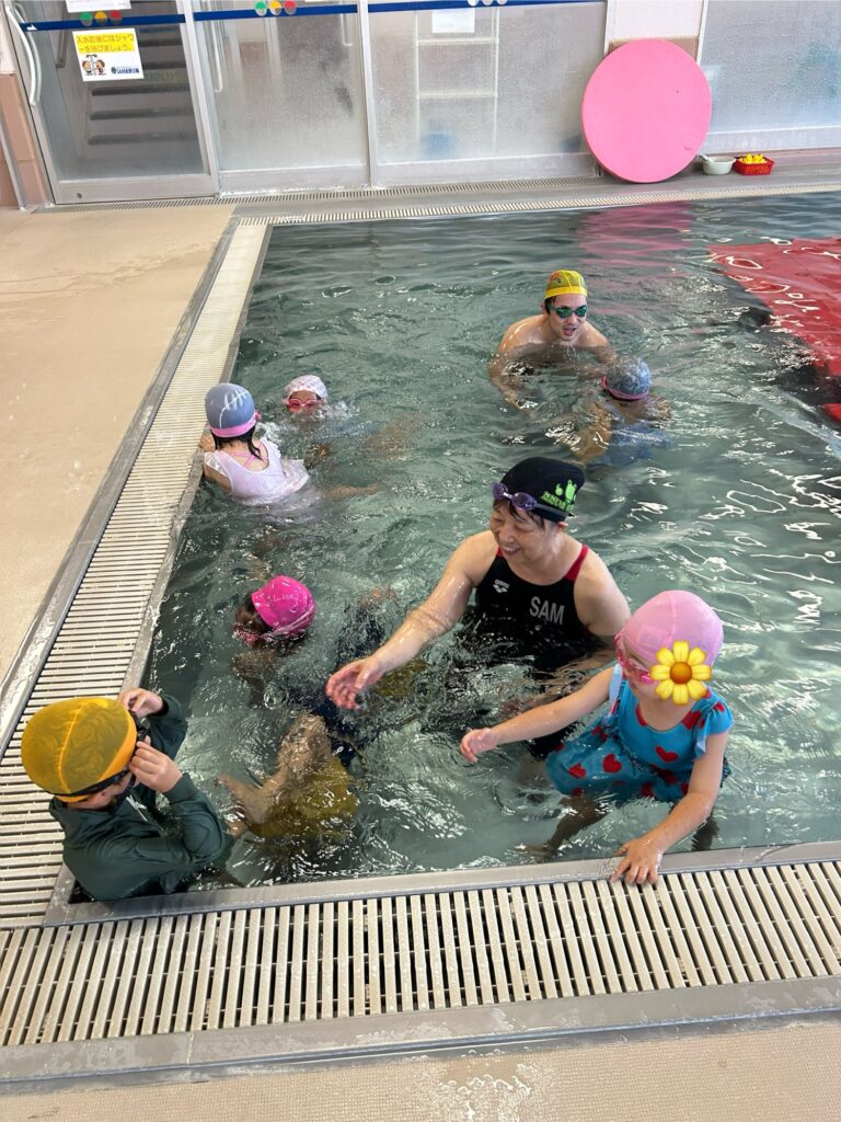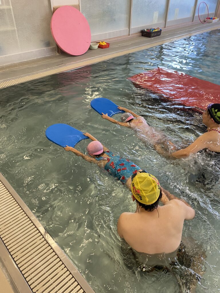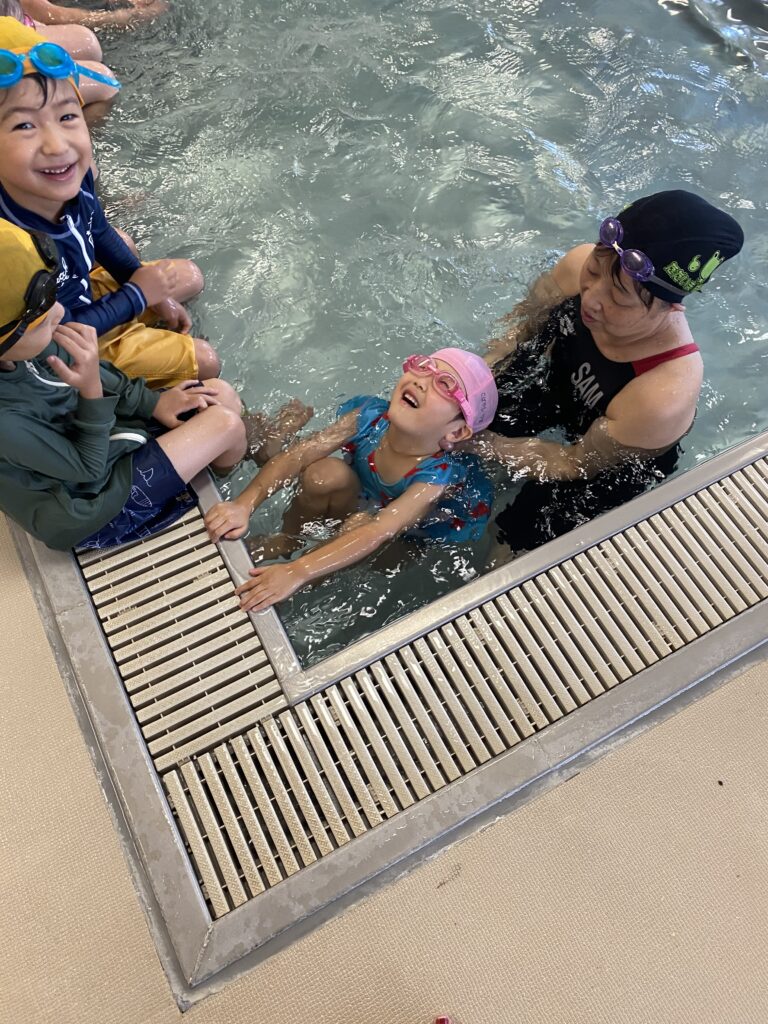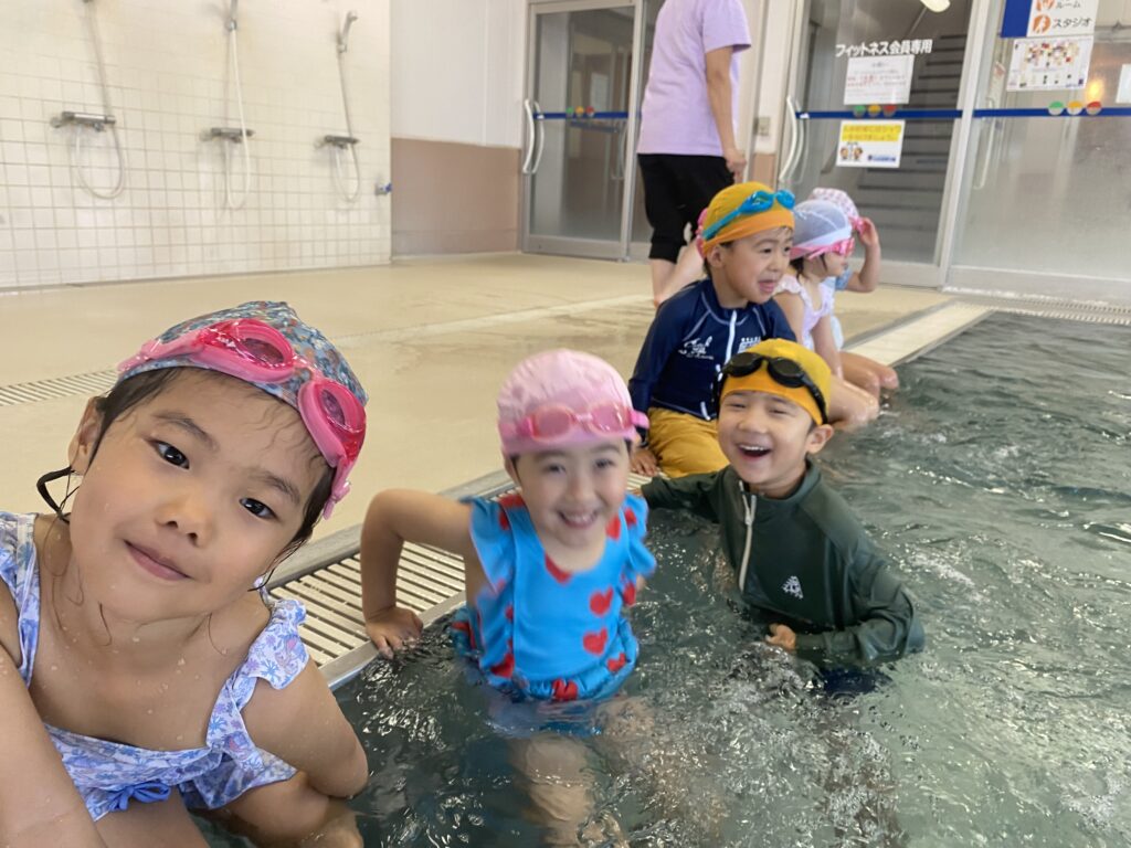 水曜日はスイミングレッスン🏊。頭を水に浸ける練習をしました。最初は少し怖く感じますが、みんな勇敢に挑み、回を重ねるごとに強さと自信を身につけています!🐠✨