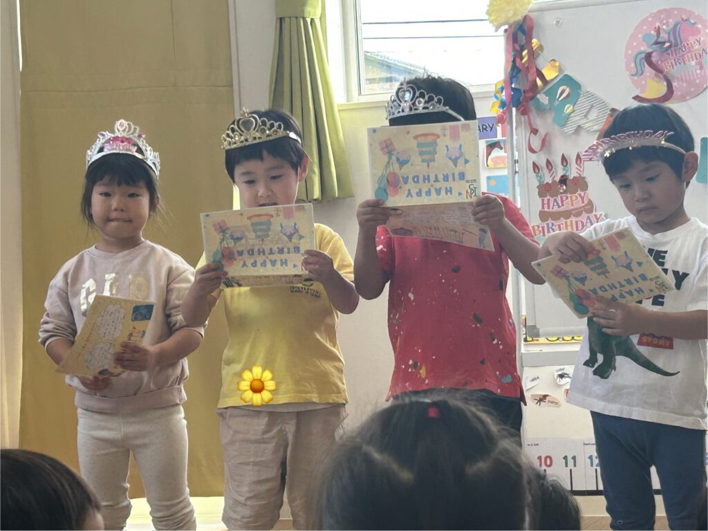 そしてもちろん、今週は金曜日に素敵な祝い事——誕生日パーティーで締めくくりました!🎂🥳 今月お誕生日を迎えたクラスの3名のお友達と、オーロラから1名のお友達を祝福しました。みんなは王冠👑をかぶり、楽しい質問に答え、一緒に歌って踊り、お持ち帰り用のカードを受け取りました。週の締めくくりにふさわしい、とても楽しい時間となりました!🎶💌✨