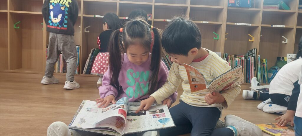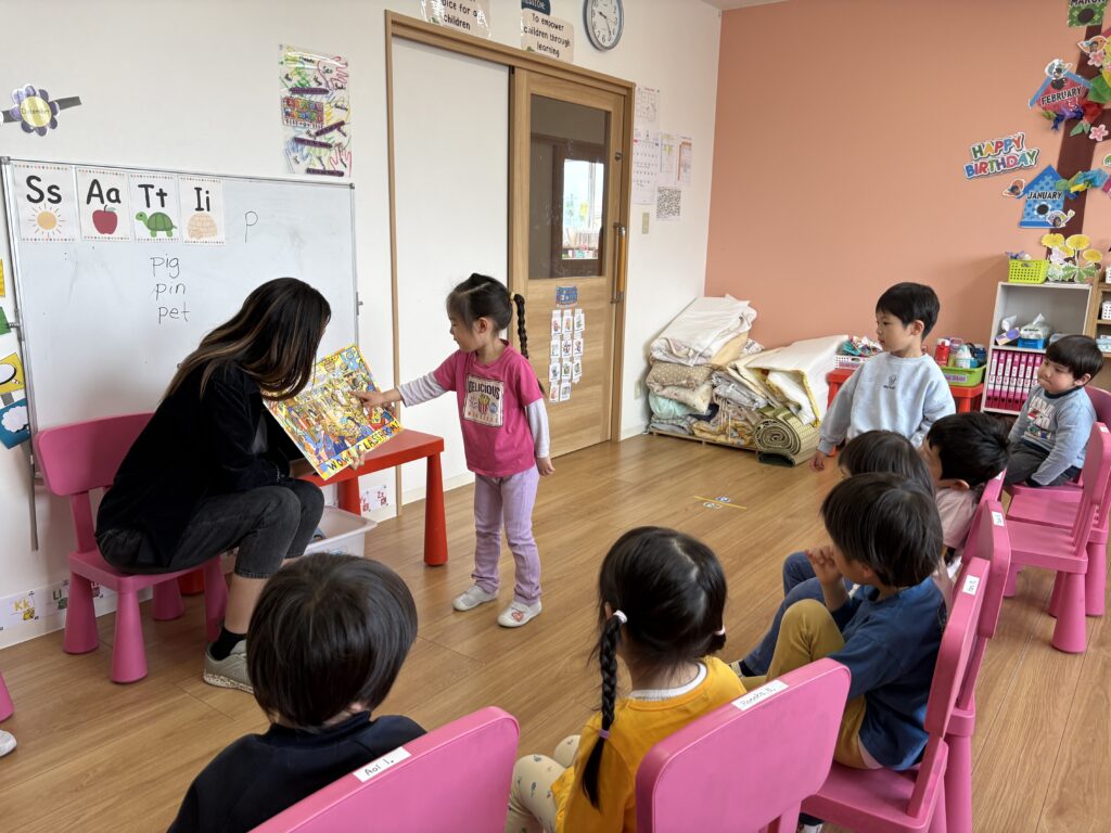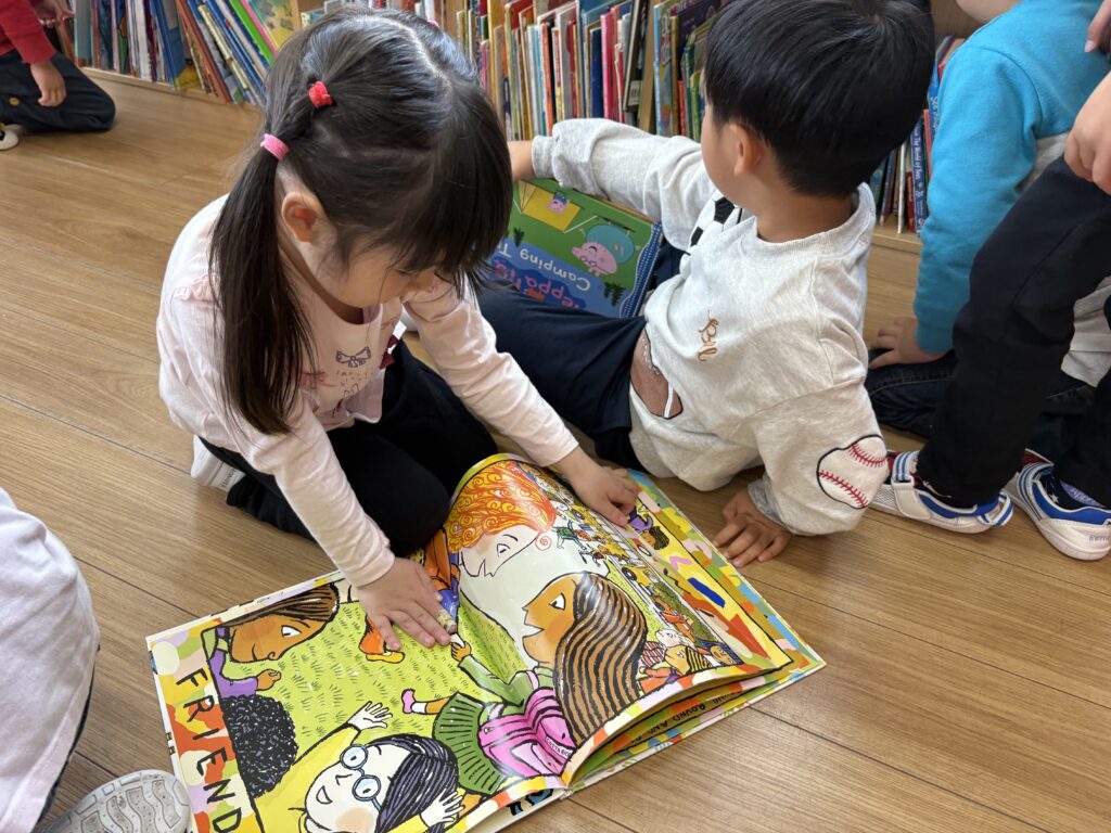 これまでに、私たちは『ワオ・スクール!』を読みました。これは、学校コミュニティにおける人々の様々な役割を紹介する、楽しくて視覚的にも魅力的な本です。私たちは一緒に、「あなたは生徒?それとも先生?」「生徒は教室で何をするの?」といった質問を話し合いました。生徒の中には、多くの役割は思いやりを持つことだと答えた子もいました。