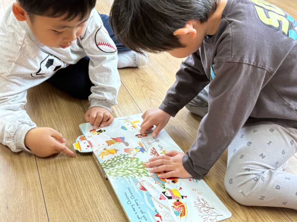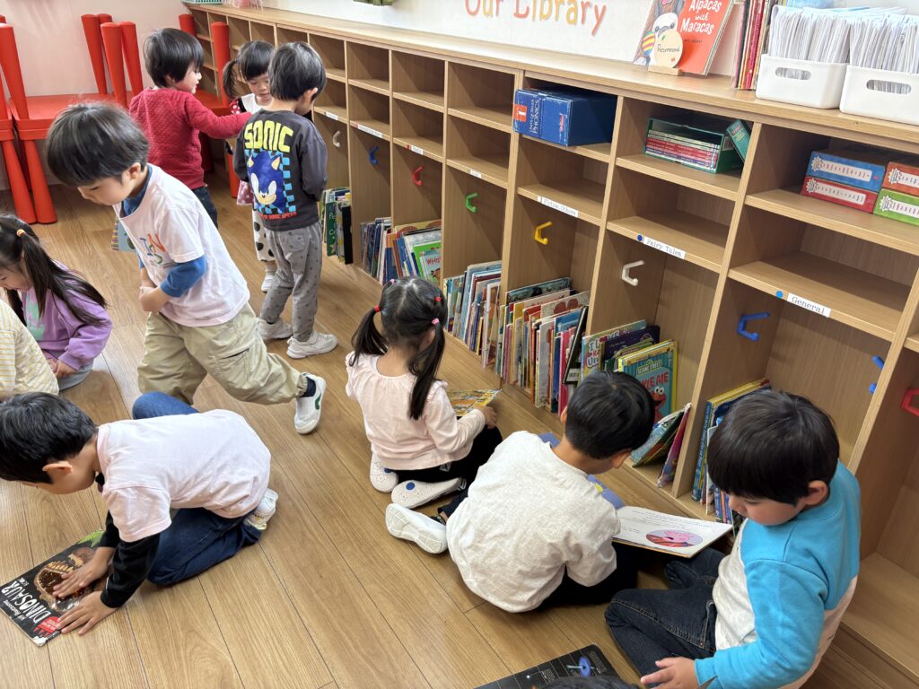 私たちは公園にも行って、雪のように舞い散る桜の花びらを楽しみました。生徒たちは自然の美しさに喜びを感じていました。今週は雨が降った日は、室内で遊んだり、新しい本を読んだりして楽しみました。