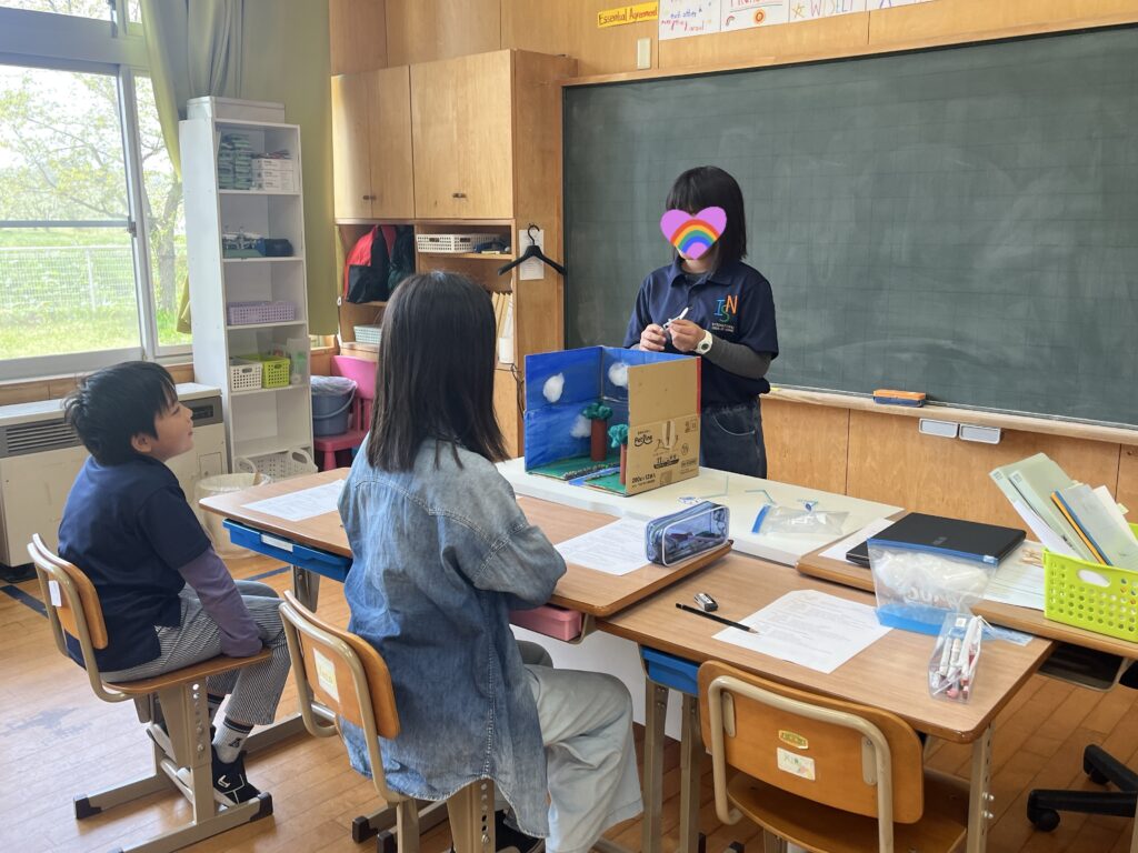発表の中で、児童たちは水の循環の仕組みについて、蒸発・凝結・降水といった重要な過程を分かりやすく説明しました。自分たちで作成したモデルを視覚教材として活用しながら、それぞれの段階を丁寧に説明し、水がどのように私たちの環境の中を循環しているのかを理解できるように導いていました。