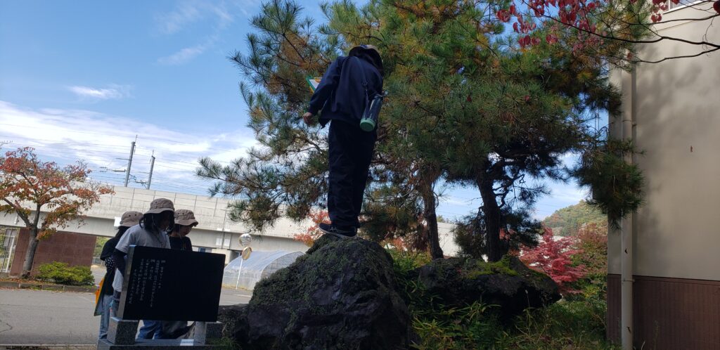 生徒たちは外に出て、秋の涼しい空気の中で木々の葉の色の変化や植物の様子、冬に向けての動物たちの行動を観察しました。