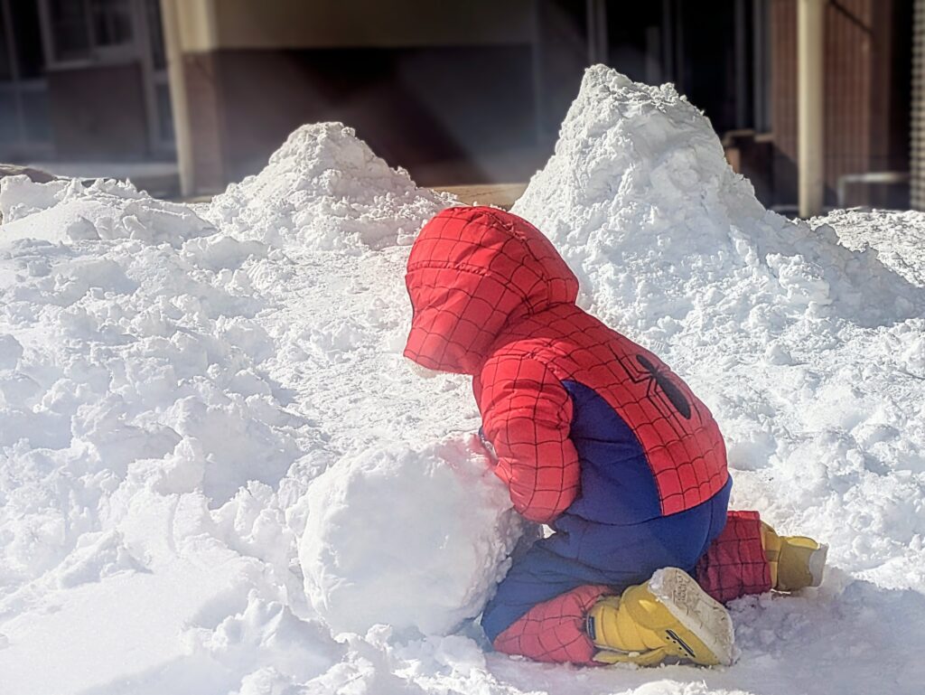 This week, we used the freshly fallen snow to roll big snowballs and build a large snowman.