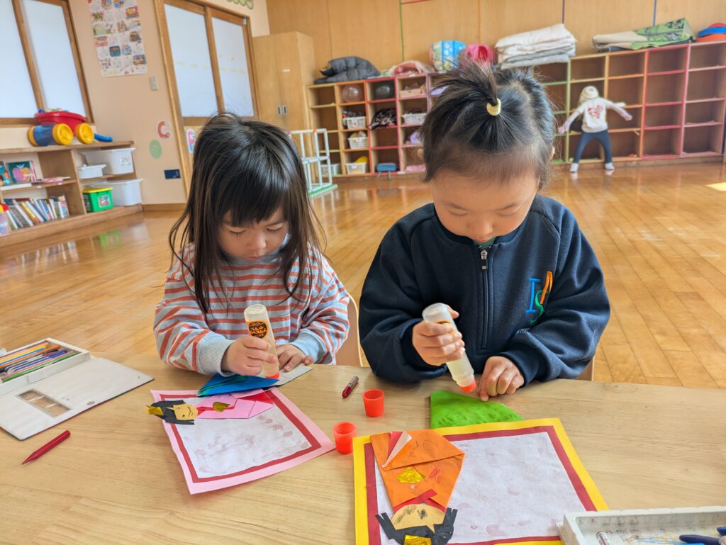 着物は折り紙を使い、それぞれが工夫しながら着物らしく折ろうとする姿が見られました。