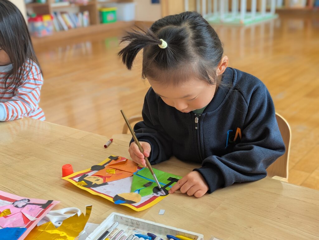 This week, the children created their own Ohinasama and Odairisama for Hinamatsuri.