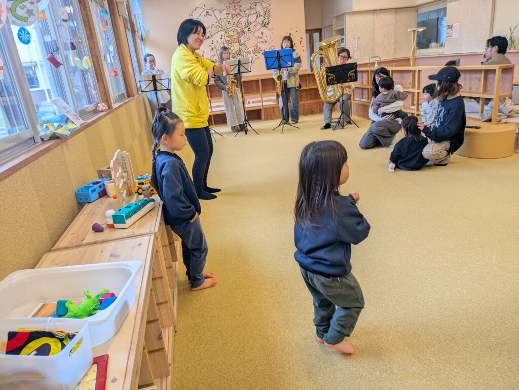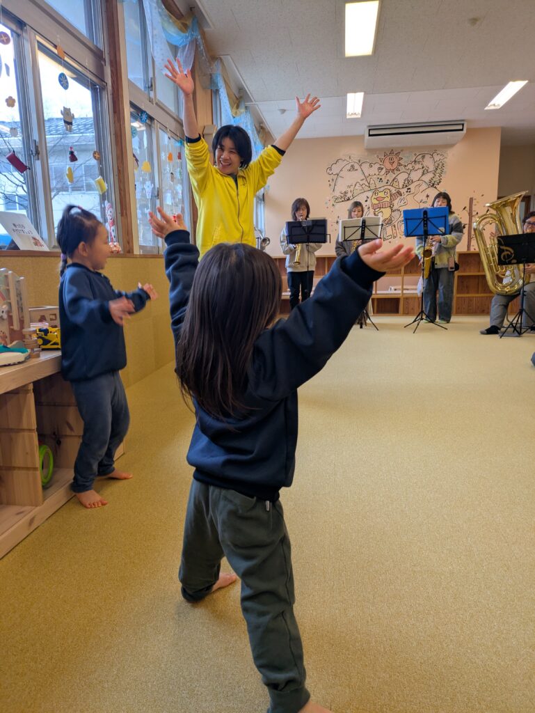 みんなで楽しくダンスをしたり、大きな楽器の迫力ある音に耳を傾けたりと、さまざまな体験を楽しみました。