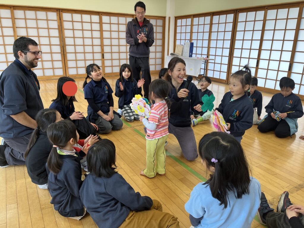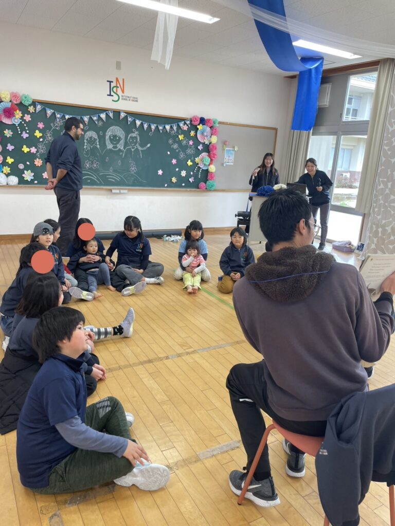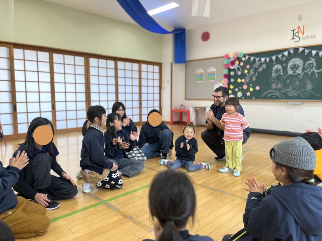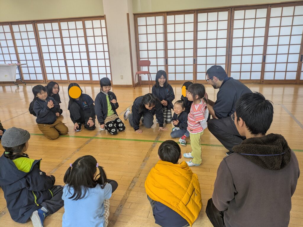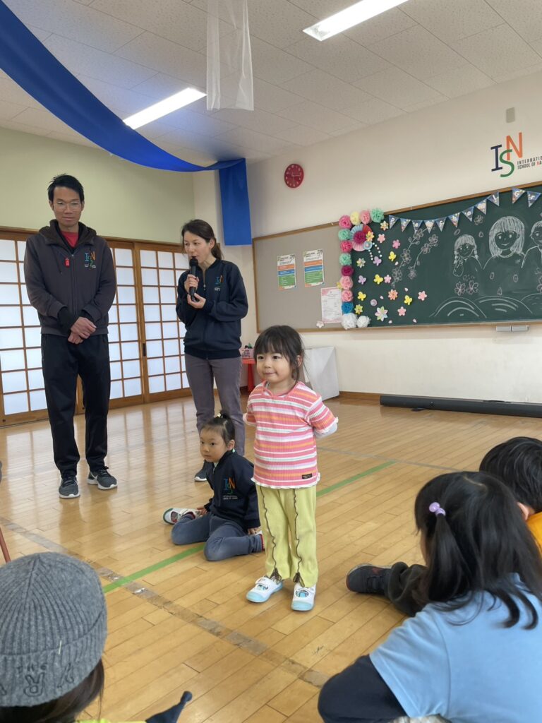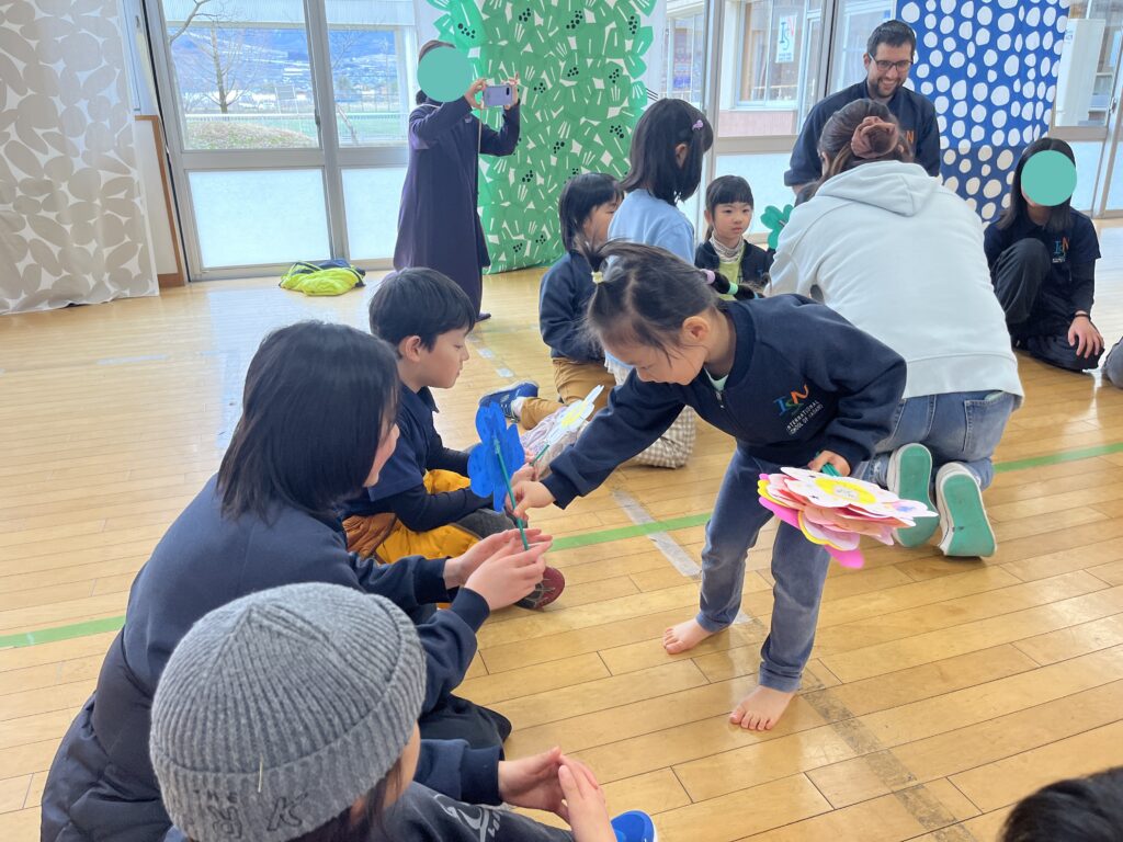 On the last day, we held a farewell party for the Rainbow Class together with the elementary school students and teachers. We danced together to the Rainbow Class’s favorite songs and enjoyed storytelling, making it a wonderful time for everyone to spend together. After that, we formed a circle and exchanged presents.