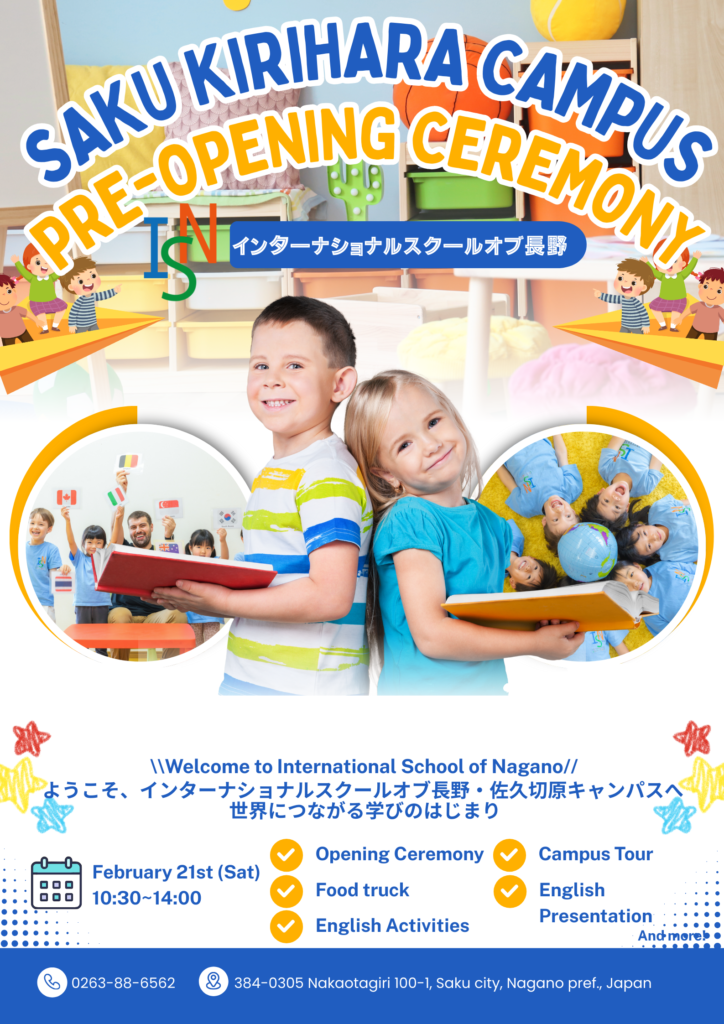 TOP / お知らせ / 2026年2月21日(土)ーインターナショナルスクールオブ長野 佐久切原キャンパス🏫プレオープンセレモニー開催!
