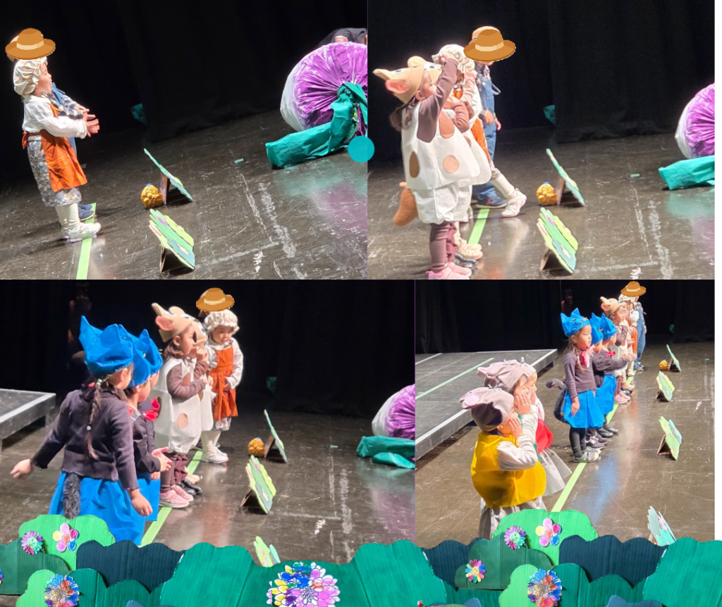 島内キャンパスの子どもたちは、魔法のようなウィンターショーの中で、さまざまな表現の魅力が伝わる感動的なパフォーマンスを披露してくれました。ウォーターフォールクラスは一番小さなクラスですが、17日のステージでは、その小さな体からは想像できないほどの大きな一歩を踏み出しました。『おおきなかぶ(The Enormous Turnip)』の発表では、勇気とあきらめない気持ちにあふれた、笑顔いっぱいのパフォーマンスを見せてくれました。