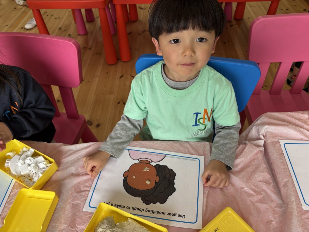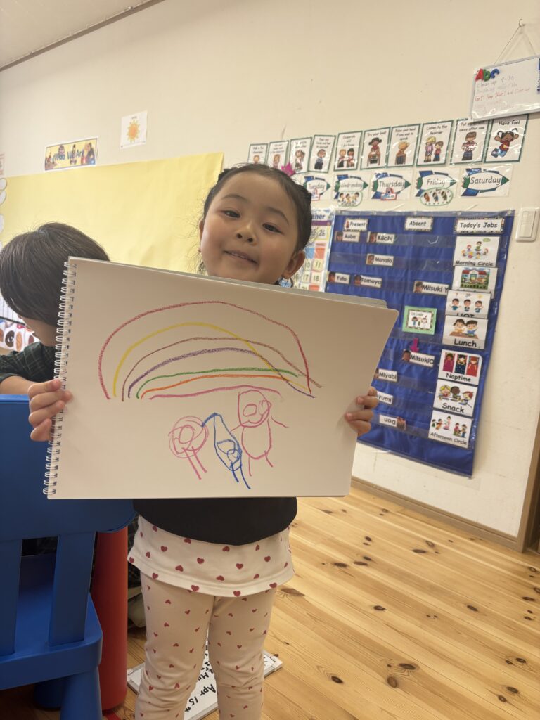 サークルタイムでは、参加することや話を聞くこと、活動に加わることへの準備が整い、子どもたちの素晴らしい成長が見られています。さらに、「Who we are(私たちは誰なのか)」というUnit of Inquiry(UOI)も導入し、子どもたちはそれぞれの個性あふれる方法で自分の考えを表現し始めています。
