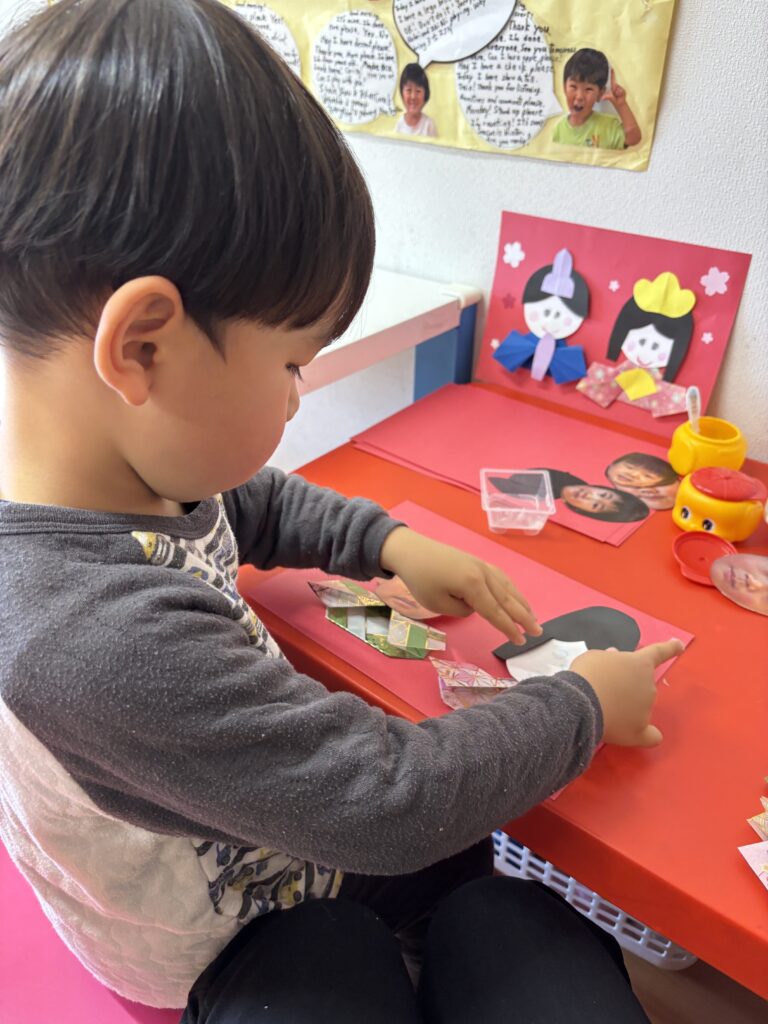 3月3日は桃の節句ですね。クラスでは、お雛様を製作しました。キャニオンさんたち、個性的なお雛様とお内裏様を作っていました。どちらかが自分のお顔です。桃の節句は女の子の健やかな成長、健康や幸せを願うお祝い事です。それでは、また来週。素敵な週末をお過ごしください!