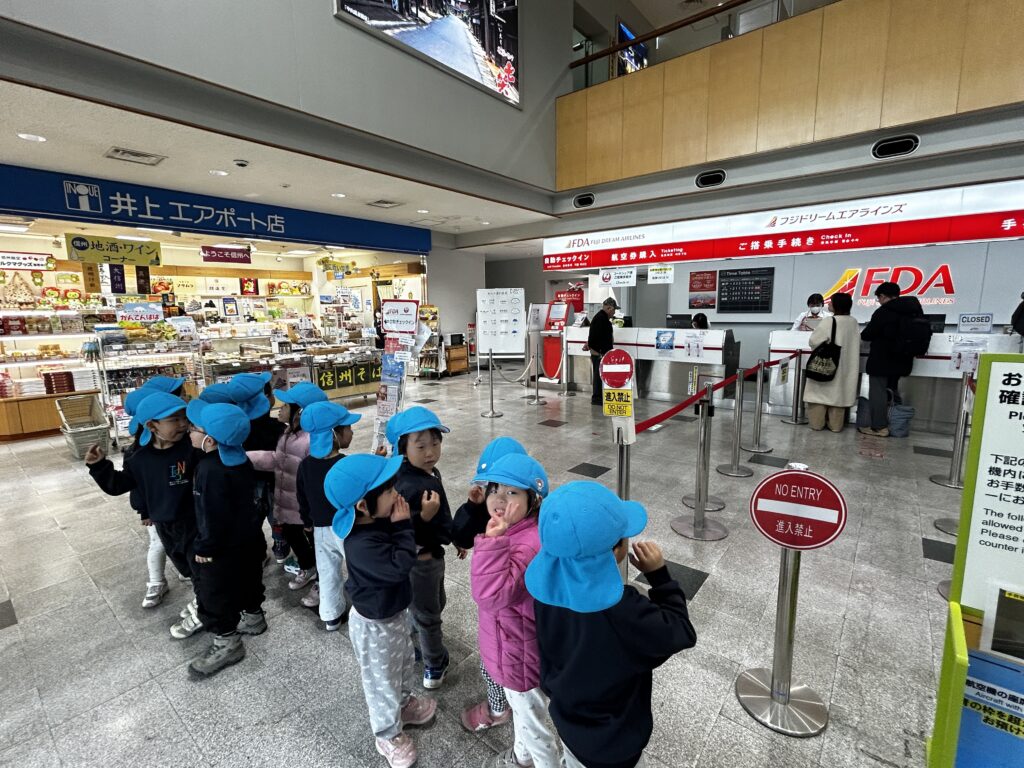 今週は、信州まつもと空港へのフィールドトリップを楽しみに過ごしました。そして今日ついに見学をしてきました。行く前には、クラス内でディスカッションをし、 “Are we flying in an airplane?” なんんて聞いてくる子もいました!(うーん、飛行機でいけたらいいね!)そして、グーグルマップを使って空港に行ってみたりもしました。キャニオンさんたちは、赤や青のFDA飛行機を見ることをとても楽しみにしていました。FDA、JAL?金曜日にはどの飛行機を見ることができるかを楽しみにしていました。見学当日、見たものは、FDAのグレイ色でした。エンジンを見たり、音を聞いたり。とても大きなエンジンの音に驚きました。機体には3つのタイヤが!コックピットにはパイロットが!大きな翼も見ました!