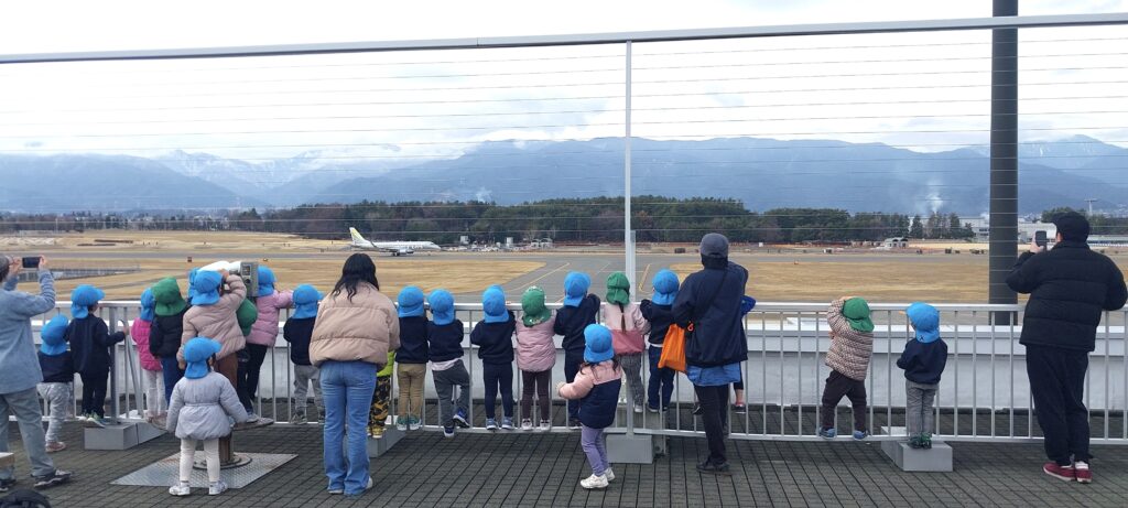 Canyon was so excited the whole week in anticipation of our UOI fieldtrip to Shinshu Matsumoto Airport! We had a pre-fieldtrip discussion. Someone asked, “Are we flying in an airplane?” Hmmm, we wish! In the classroom, we ‘visited’ the airport with Google Map. Canyon wanted to see and some colourful airplanes (aeroplane in British English). FDA, JAL what planes can we see on Friday, we wondered. The day finally came! Canyon: FDA! MATSUMOTO airport! I can see grey airplane. Look at the engines. It’s loud! Three wheels! I can see the pilot! Big wings, and the tail.