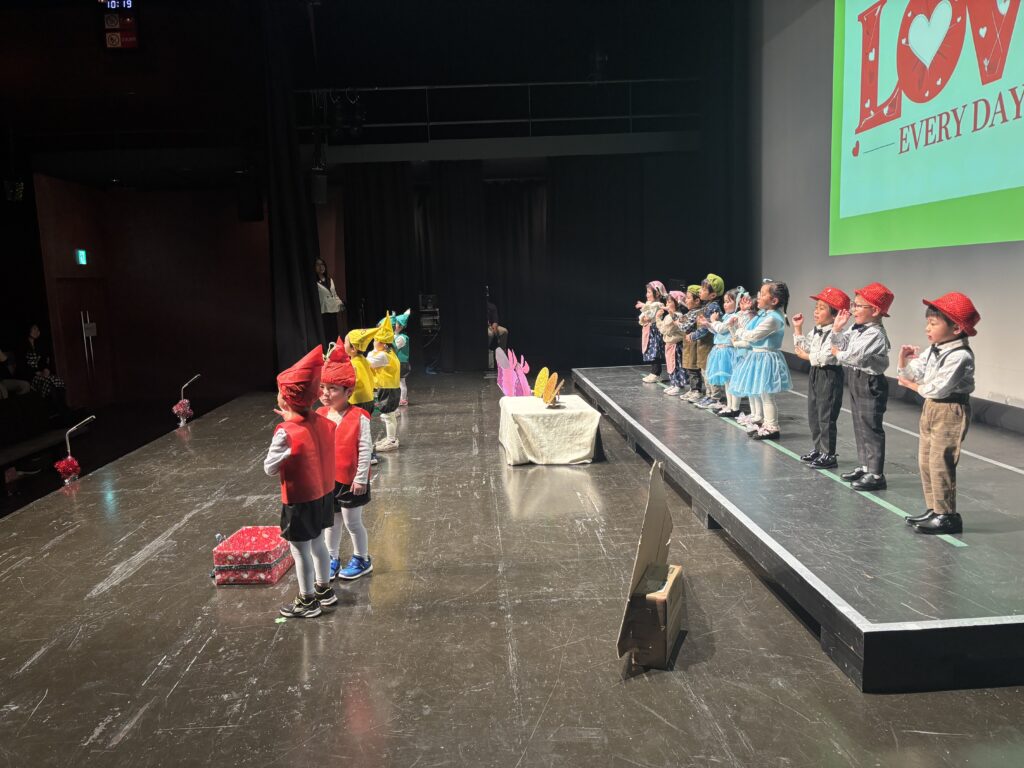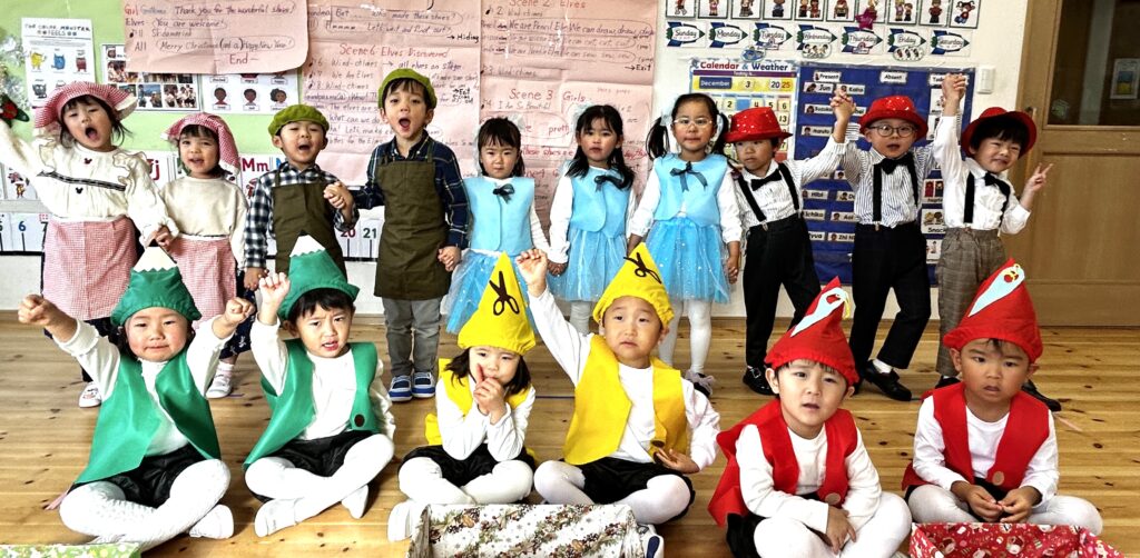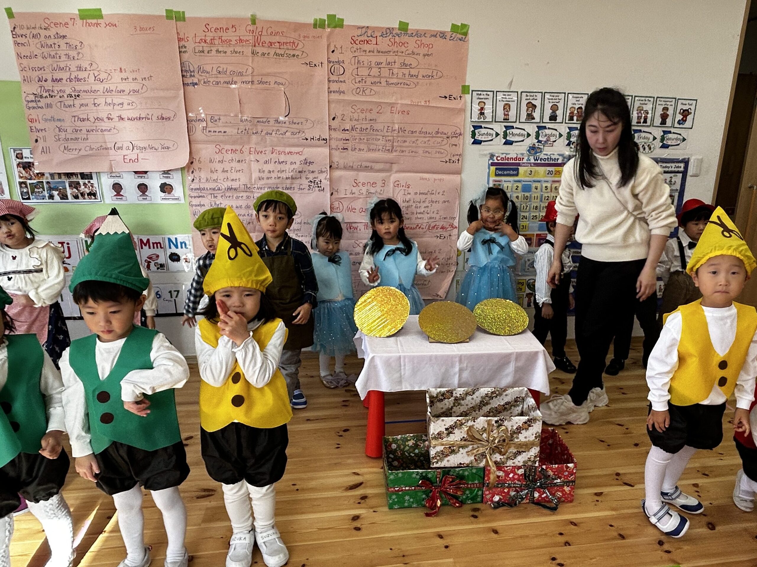 キャニオンクラスの初めてのWinterShowがありました。ショーは大成功!!キャニオンさん達は、みんな初めてのステージを楽しむことができました!ダンスをし、歌い、セリフも気持ちを込めながら大きい声で言えました。The Shoemakers and the Elvesは大ヒット!!Santa Claus is Coming To Townのカスタネットとベルのパフォーマンスもとても上手に奏でることができました。保護者の皆さまから温かい拍手を頂きました。ありがとう!お家での練習にもお手伝い頂いたことと思います。そして何より、頑張ったキャニオンさんをたくさんほめてあげたいと思います。