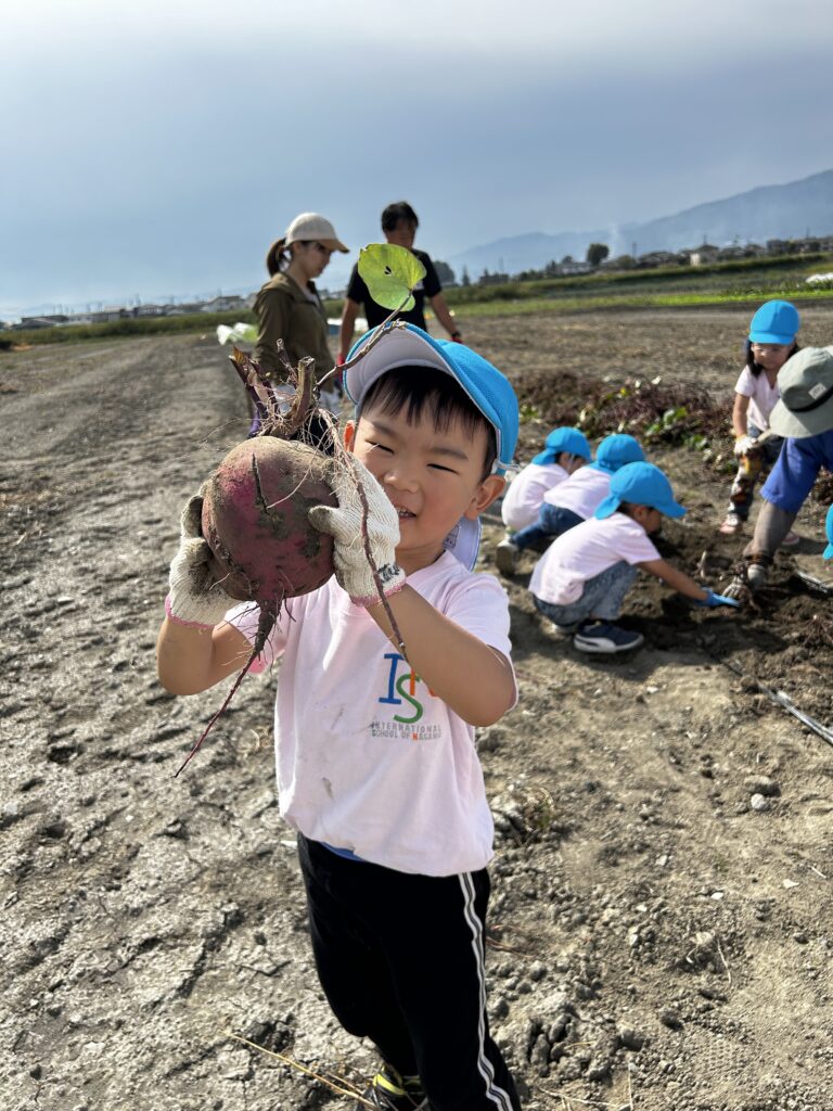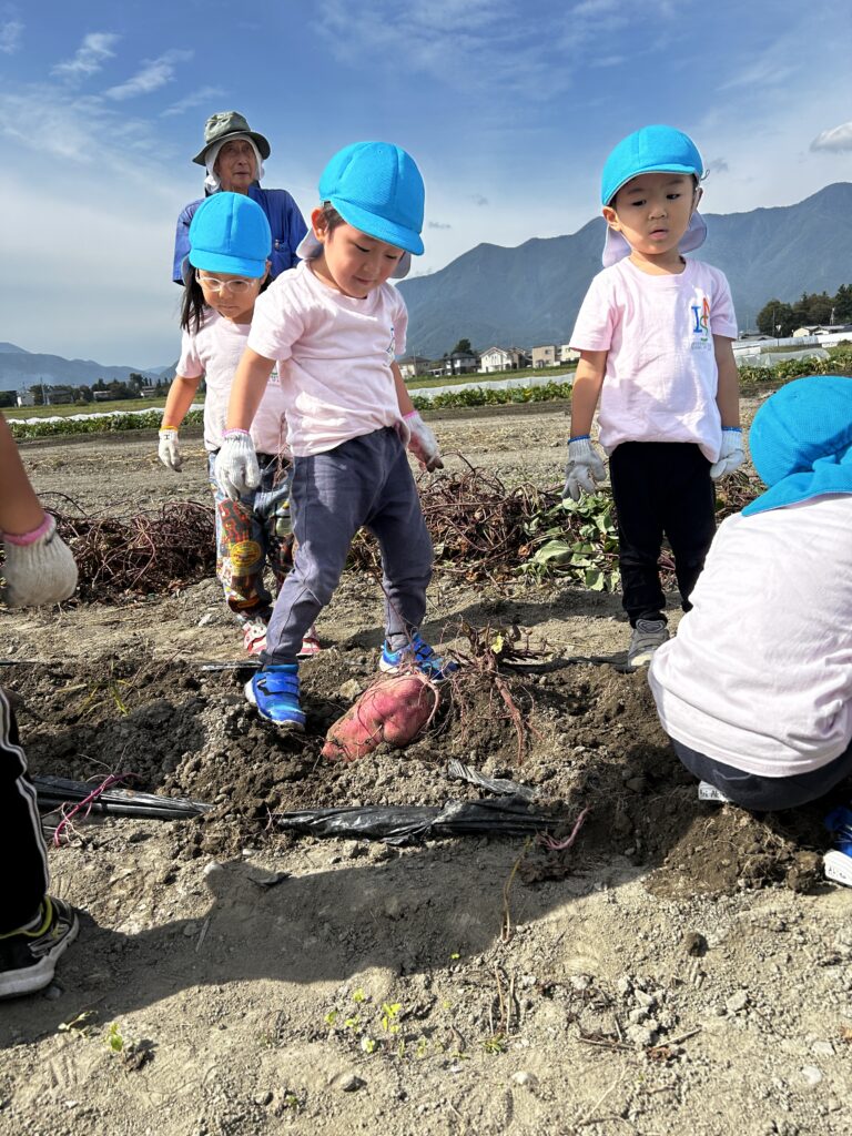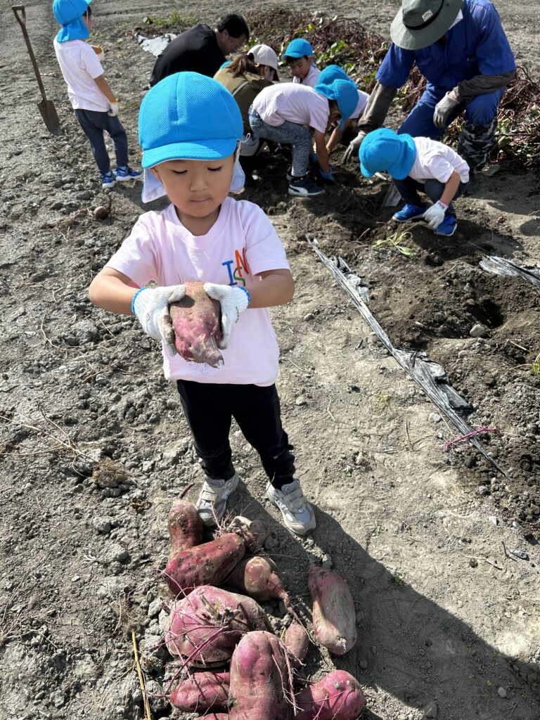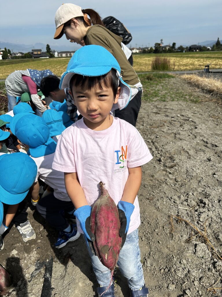 このUnit2は甘い思い出で締めくくりました…キャニオンのご家族のサツマイモ畑へ行き、芋掘り体験をしました!動物はいませんでしたが、サツマイモがたくさん!!——とっても大きなサツマイモばかり!大変な作業でしたが、キャニオンさん達は諦めずに、お芋が土から顔を出すまで一生懸命ほりました!そのあとのお弁当はまるでご褒美のよう!ママ/パパが作ってくれた美味しいお弁当をいただきました。ご準備などありがとうございました!ごちそうさまでした!それでは、素敵な週末をお過ごしください。来週またお会いしましょう。