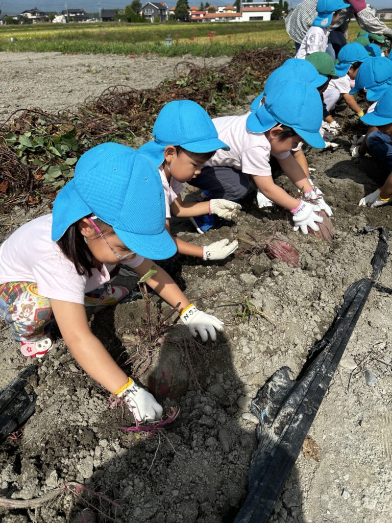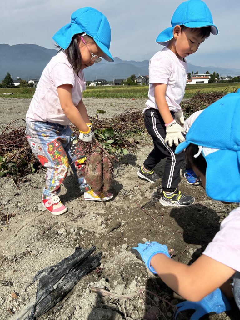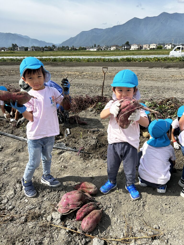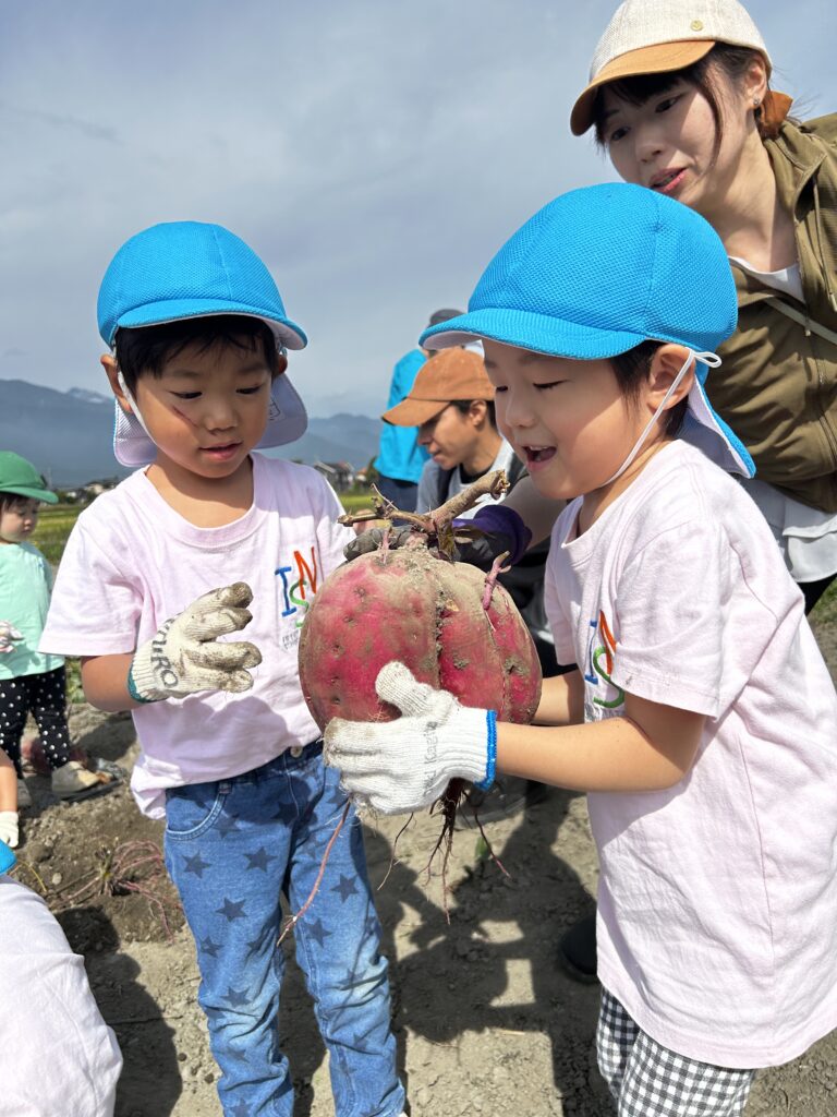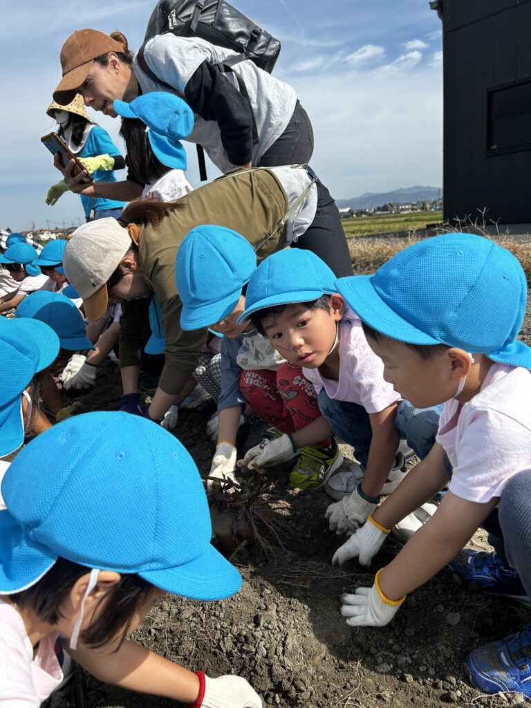 このUnit2は甘い思い出で締めくくりました…キャニオンのご家族のサツマイモ畑へ行き、芋掘り体験をしました!動物はいませんでしたが、サツマイモがたくさん!!——とっても大きなサツマイモばかり!大変な作業でしたが、キャニオンさん達は諦めずに、お芋が土から顔を出すまで一生懸命ほりました!そのあとのお弁当はまるでご褒美のよう!ママ/パパが作ってくれた美味しいお弁当をいただきました。ご準備などありがとうございました!ごちそうさまでした!それでは、素敵な週末をお過ごしください。来週またお会いしましょう。