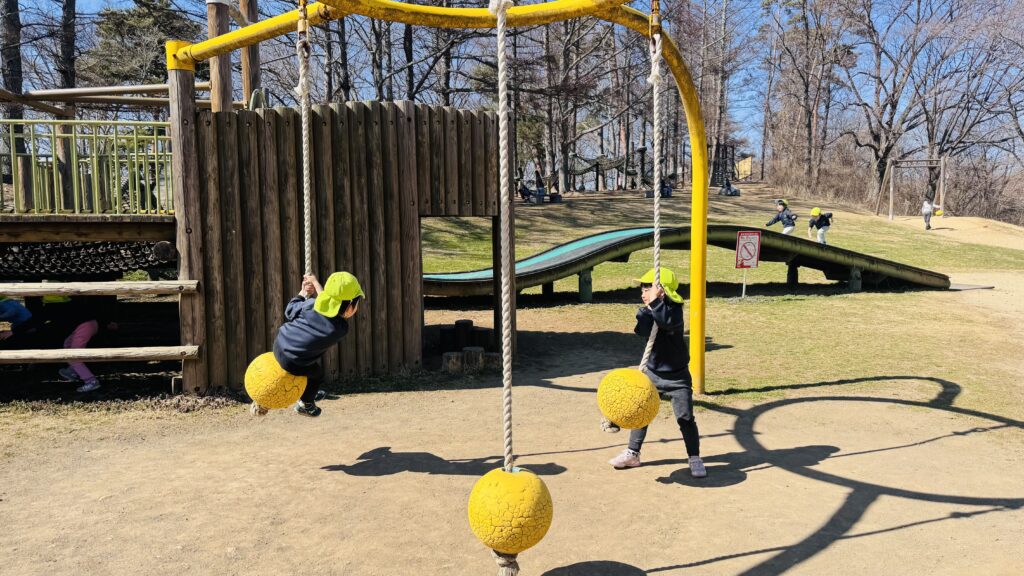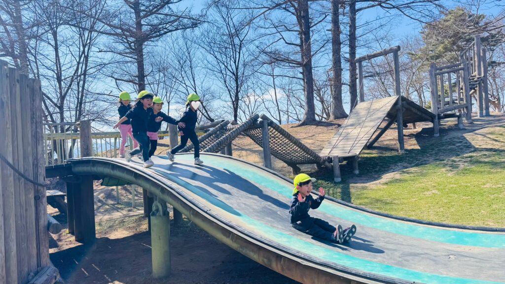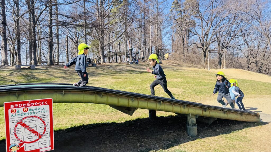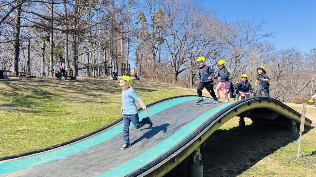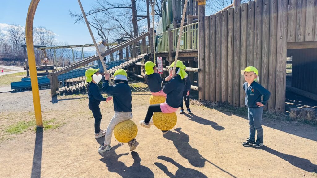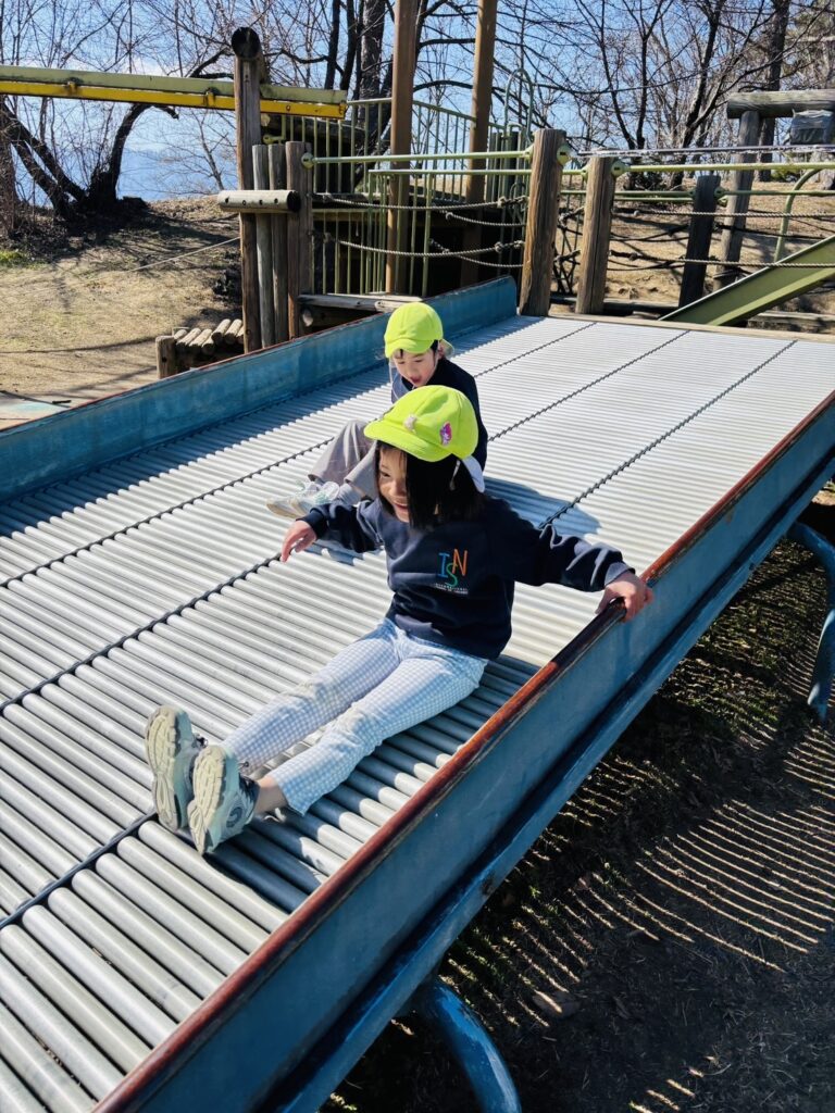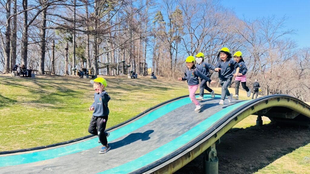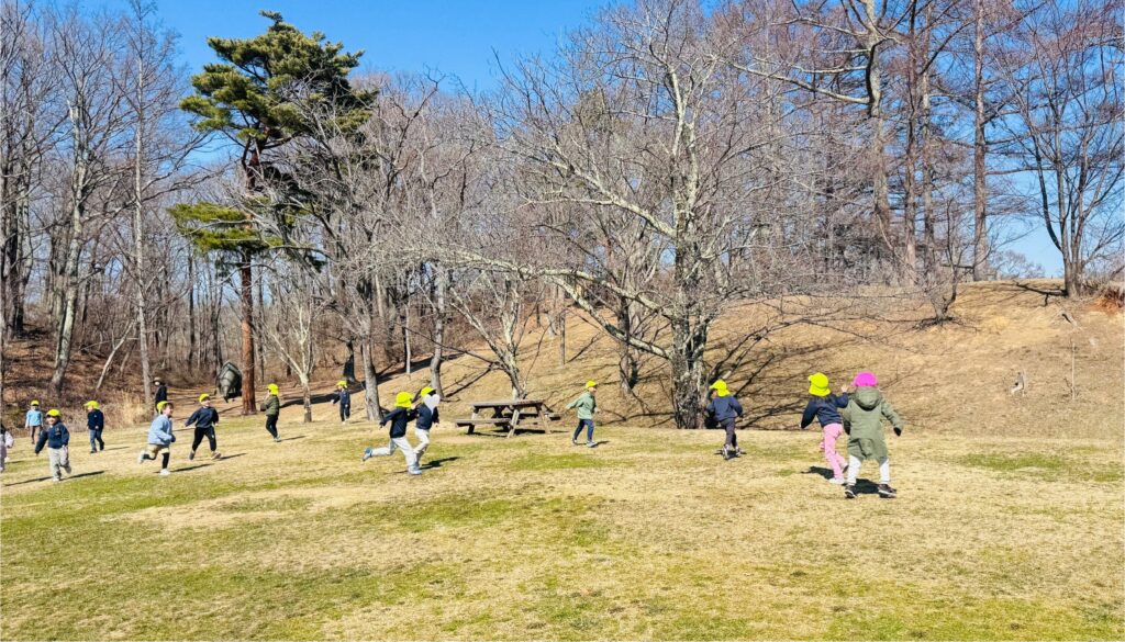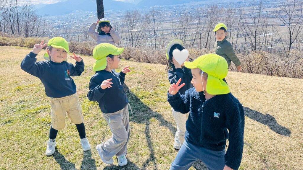 今週はRainforestクラスのみんなと過ごす最後の週。最後の思い出作りにアルプス公園にピクニックに出かけました。小さい頃は大変だった山道も、今のRainforestさん達はひょいひょいと登れちゃいます。広場で鬼ごっこをしたり、木の実を探したり、大きな恐竜に上ったり、遊具で遊んだりして楽しんでいると、あっという間にスナックタイム。みんなでシートを広げ、仲良くスナックを食べました。食べ物をとってしまう2羽のいたずらカラスがいると聞いて、「カー!カー!」と威嚇をしたり、おやつの入ったカバンをみんなのバックで一生懸命隠したりと必死な子ども達。素晴らしいチームワークのおかげで無事みんなのおやつは守られました。最後にまたひとつ、素敵な思い出が増えました。